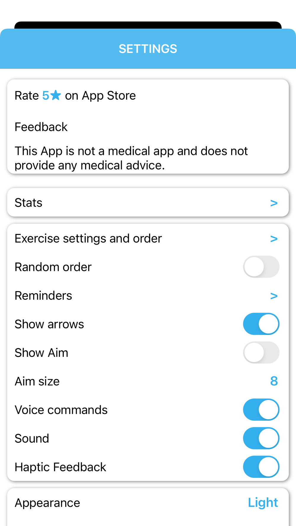 - turn on/off sound, haptic feedback, voice commands , helping arrows