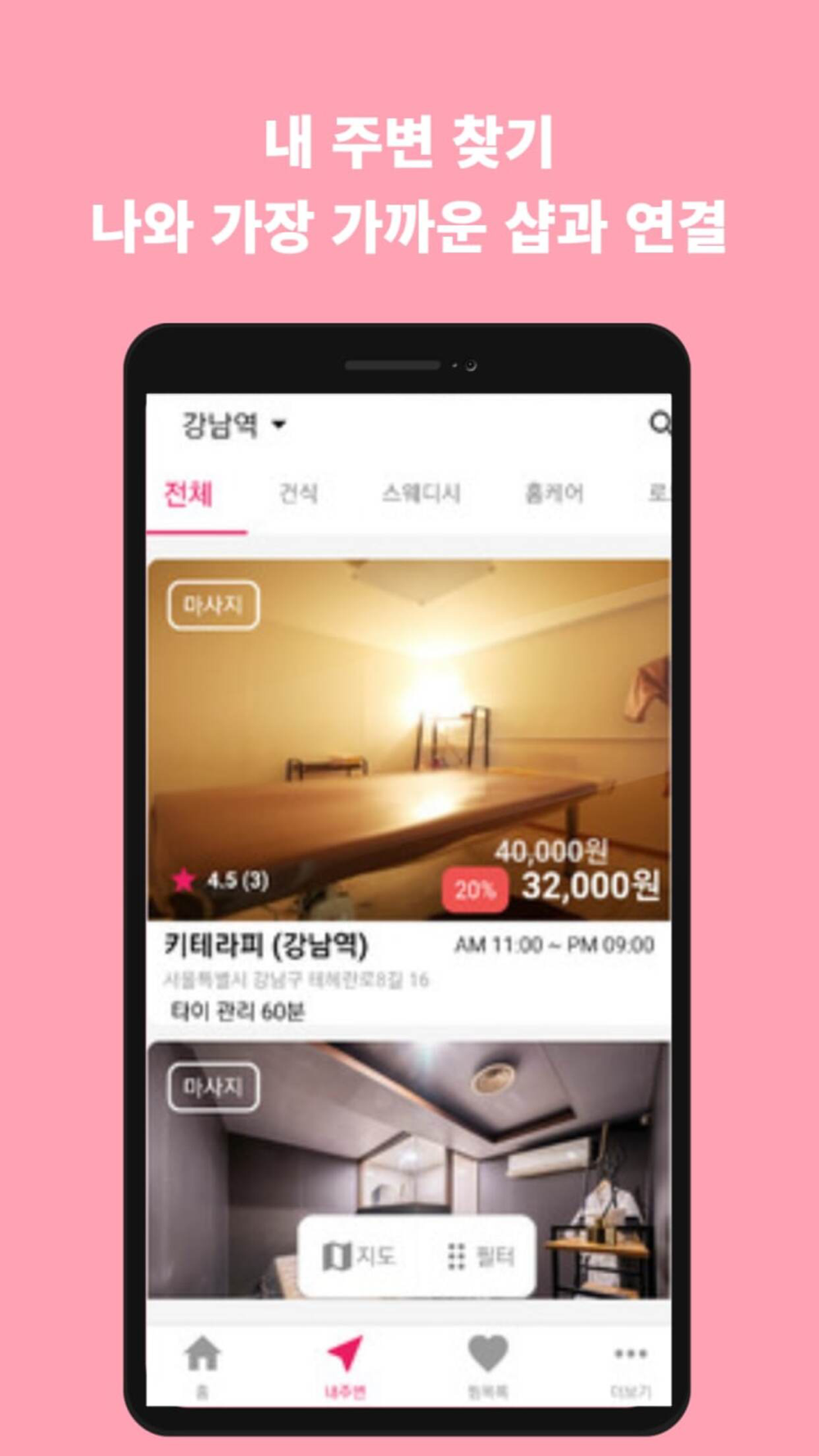 내 주변 마사지샵을 검색할 수 있습니다.