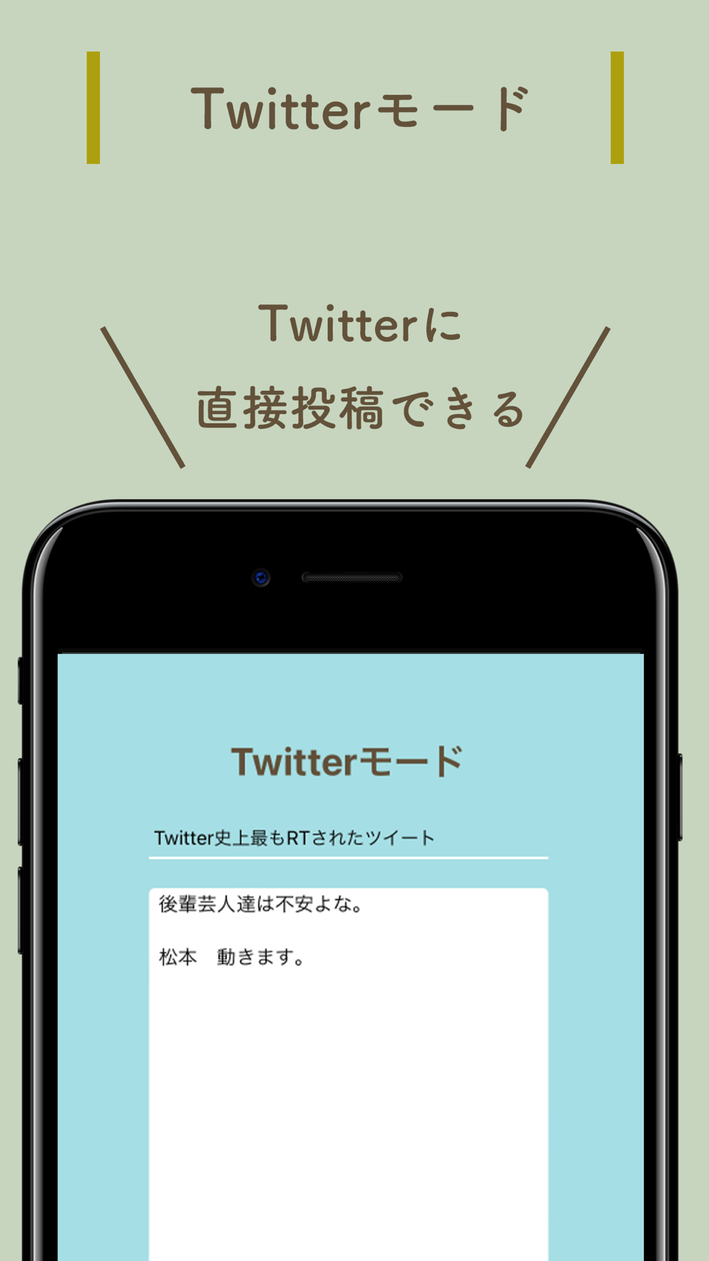 Twitterモードでは、制限字数がTwitterの仕様に合わせて140字に設定されます。また、このモードではメモを直接ツイートすることができます。メモは保存することもできるので、Twitterの下書き機能のような使い方ができます。