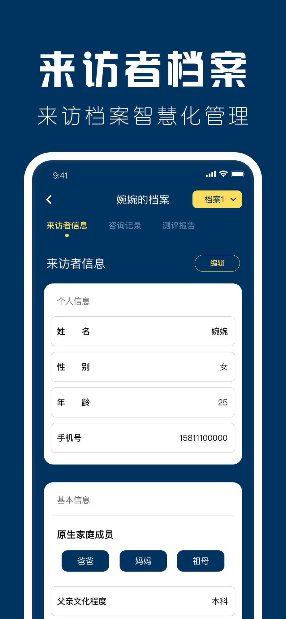 【档案管理】辅助创建来访者档案,来访管理高效便捷。