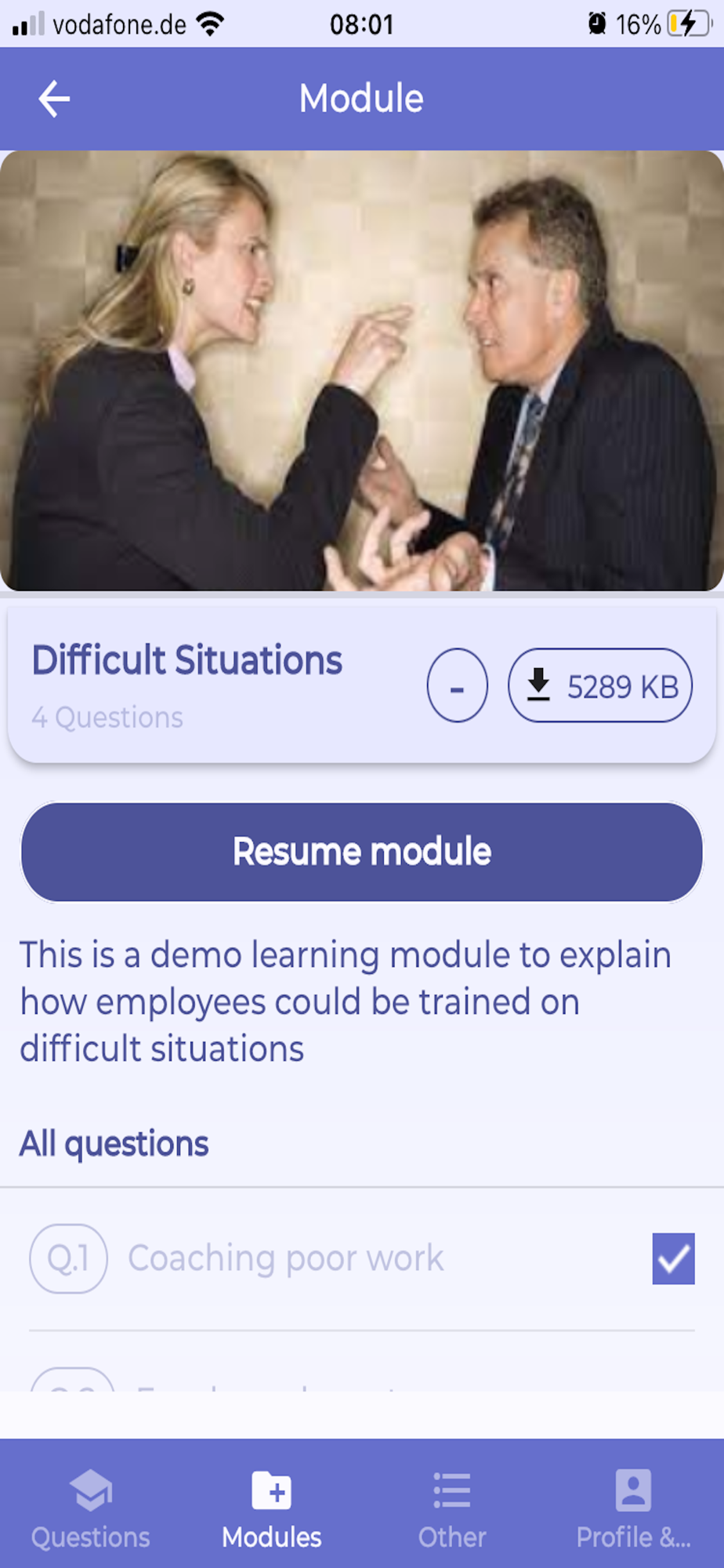Knowledge Gym is a gamified and AI-based mobile learning solutions for spaced repetition of company specific knowledge and skills.