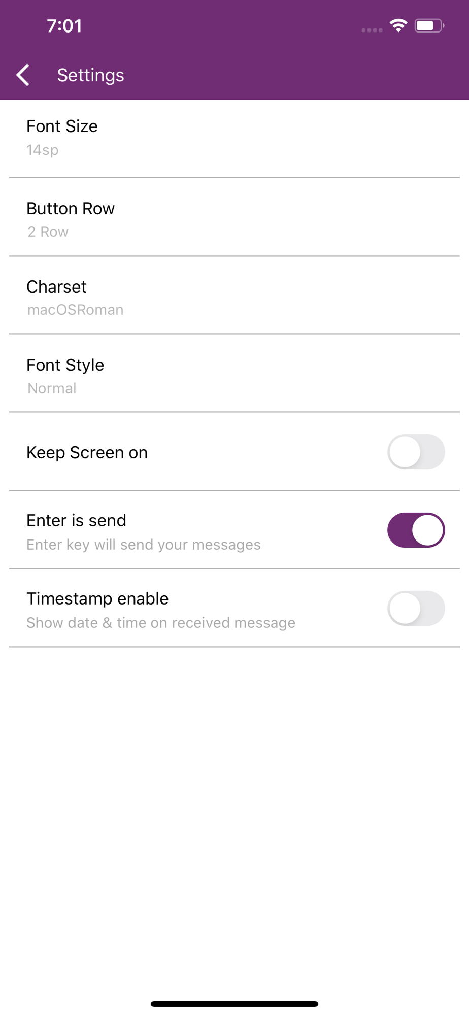 - By default, \r\n will be sent on every sending data and It can be changeable from long pressing of particular Button.