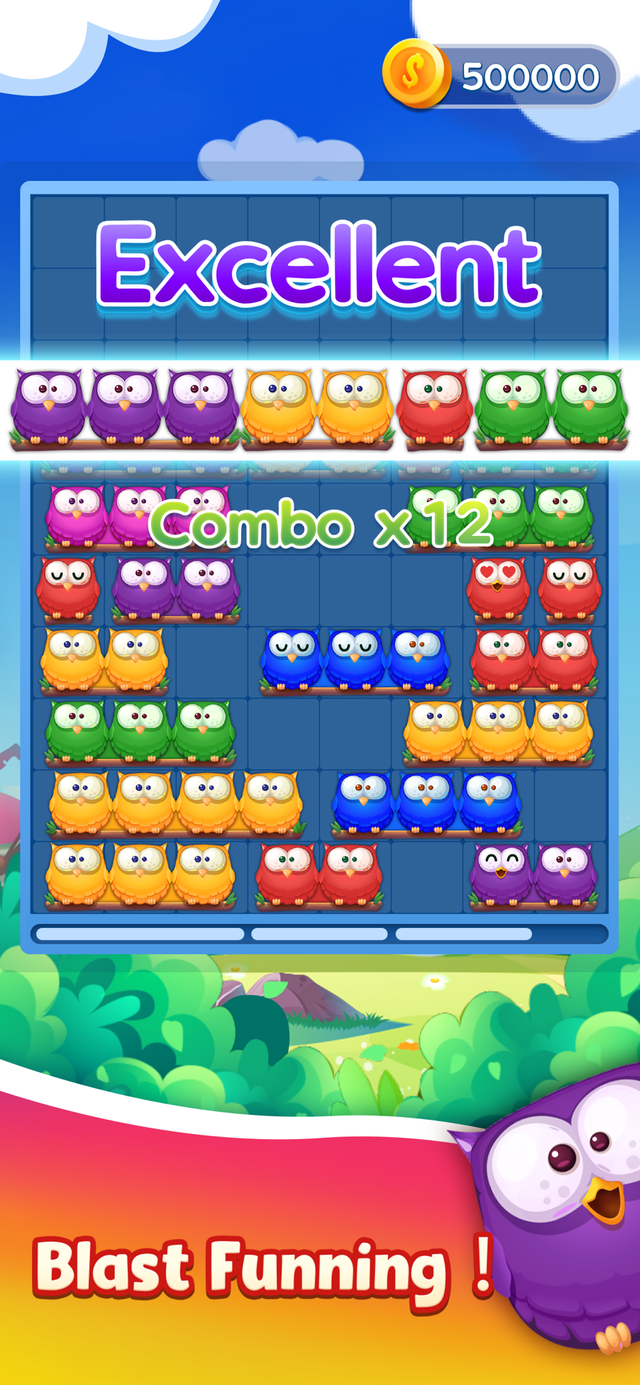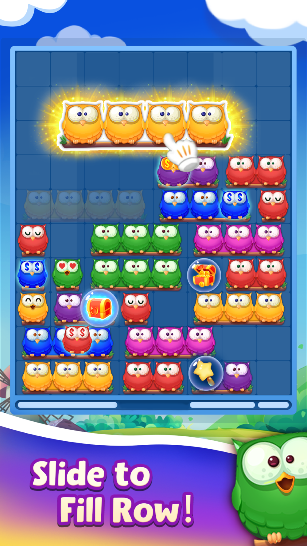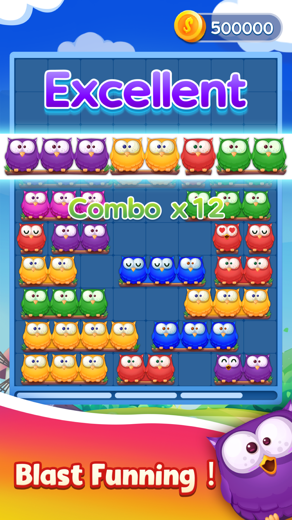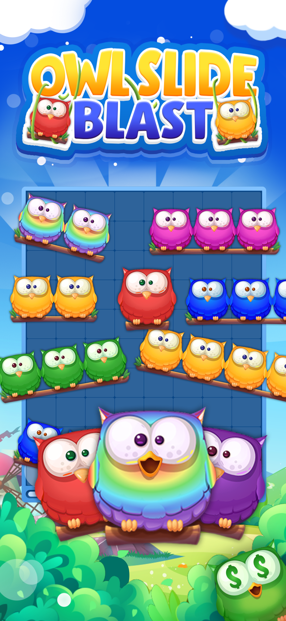Owl Slide Blast is a wonderful casual game for people who want to kill time, reduce pressure and train brain!