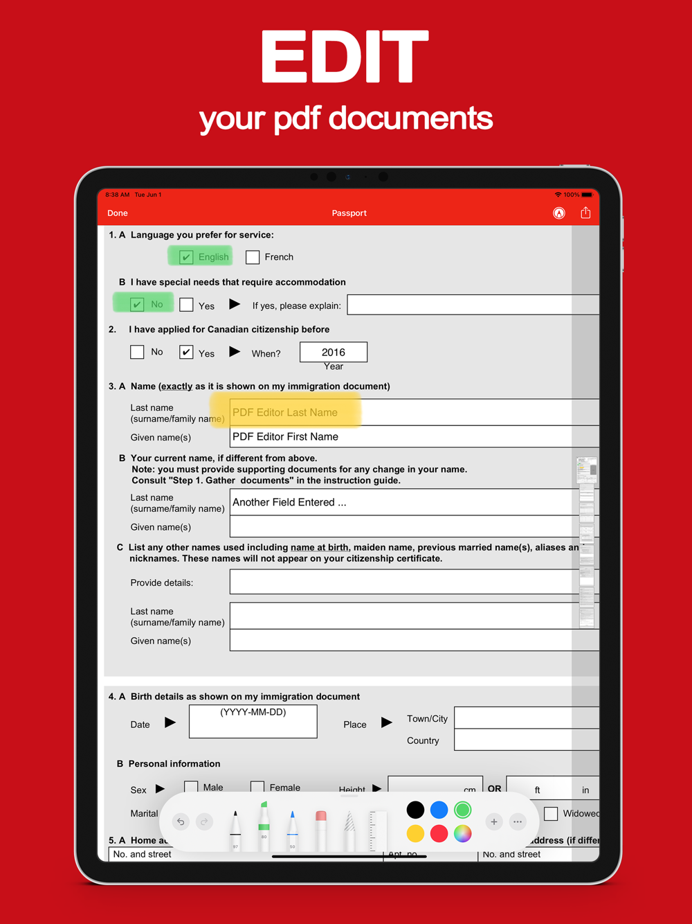 • Fill out pdf forms by typing text into fields
