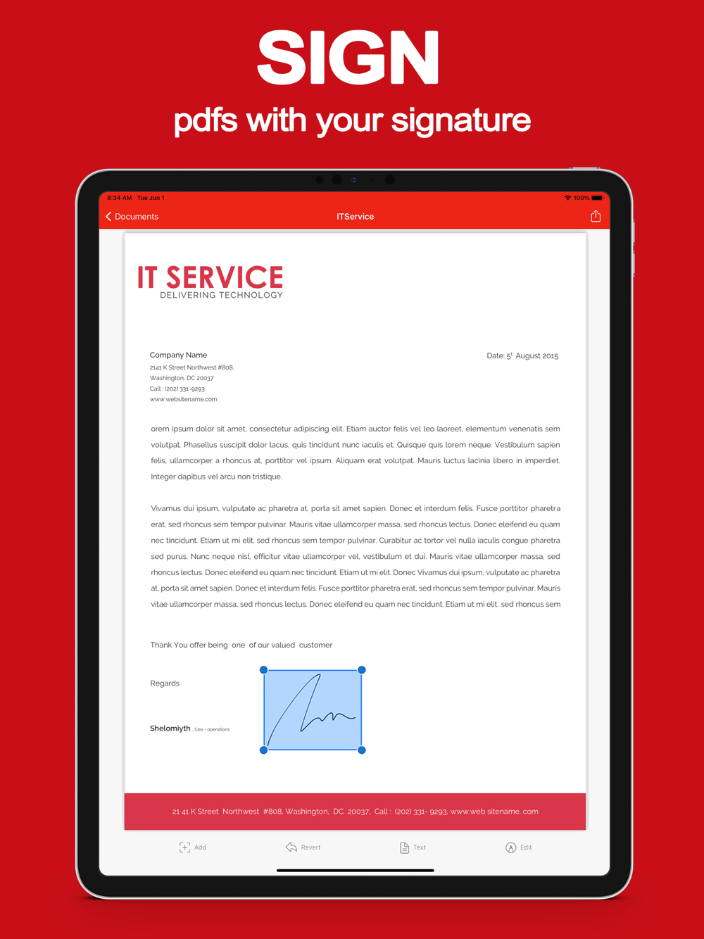 • Use your finger to sign documents with your signature