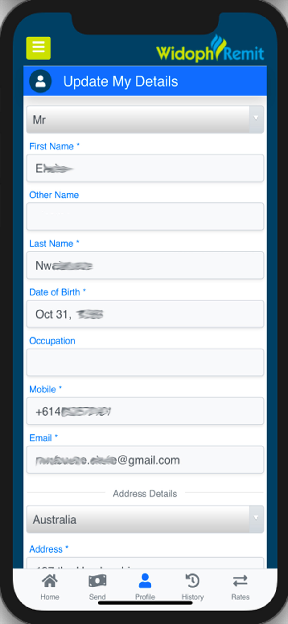 - View and update your current details