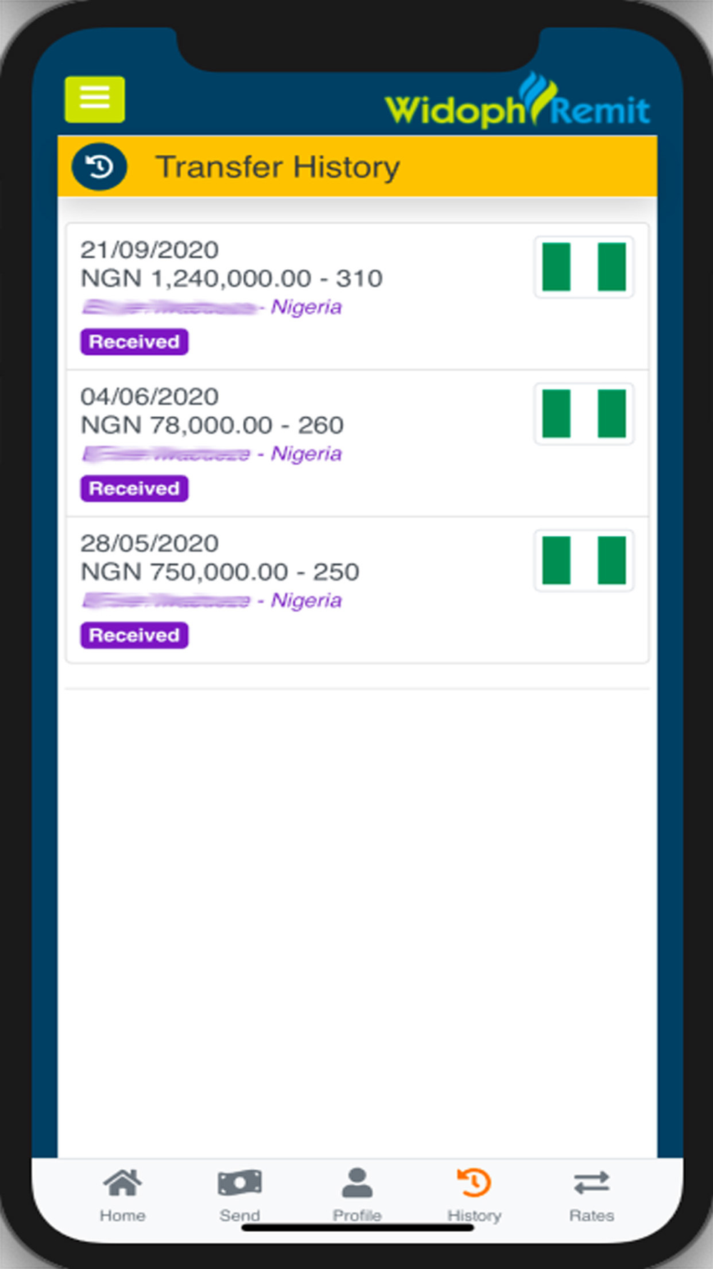 Download and start using our Widoph Transfer mobile app: