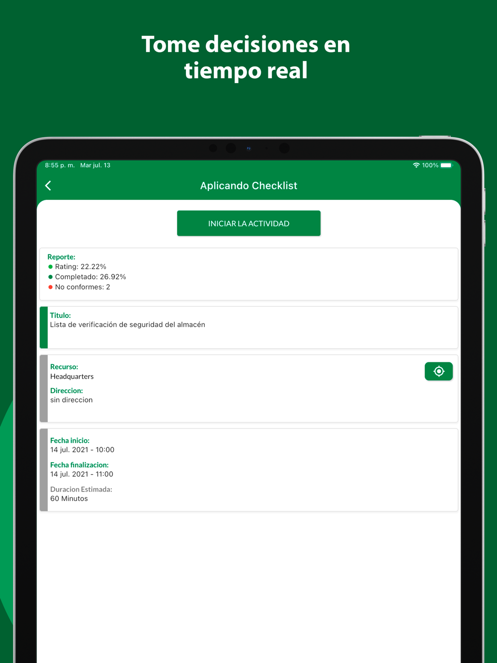 Cree checklist inteligentes y resuelva problemas en tiempo real.