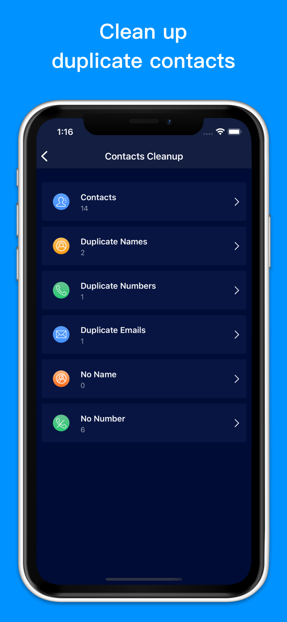 - Clean contacts with duplicated number