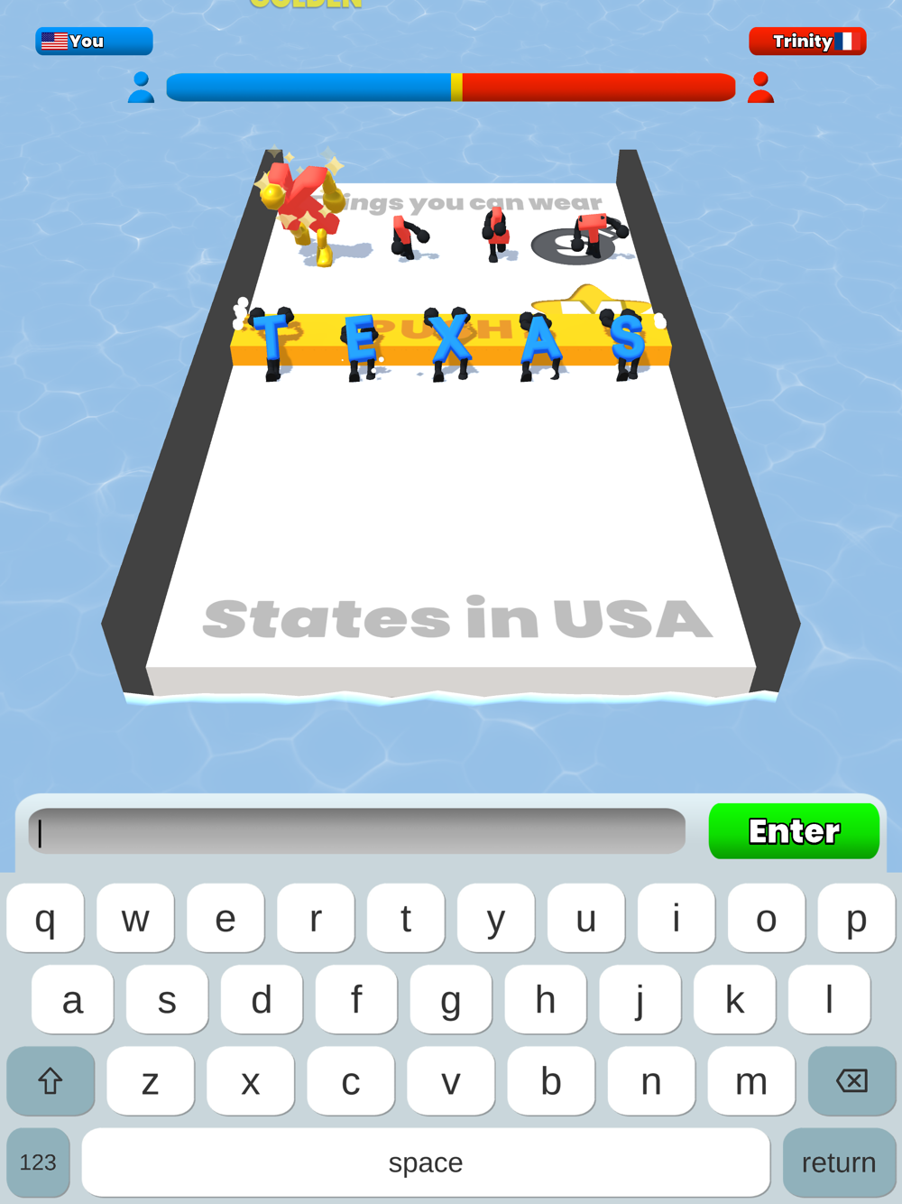 Use your opponent's word category to go behind enemy lines and destroy their pushing letters! May the fastest typer win!
