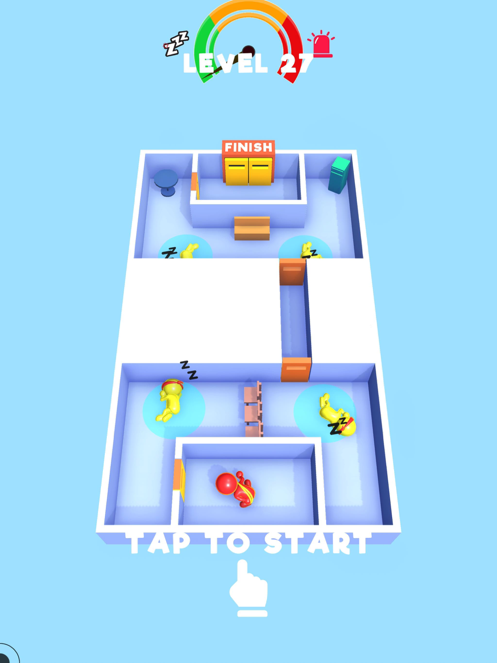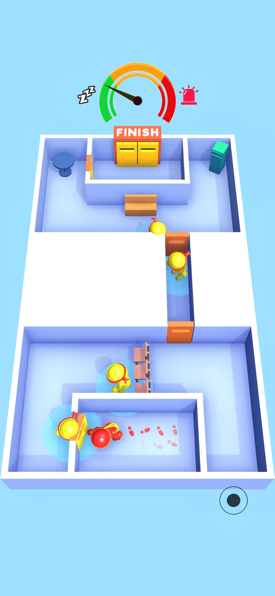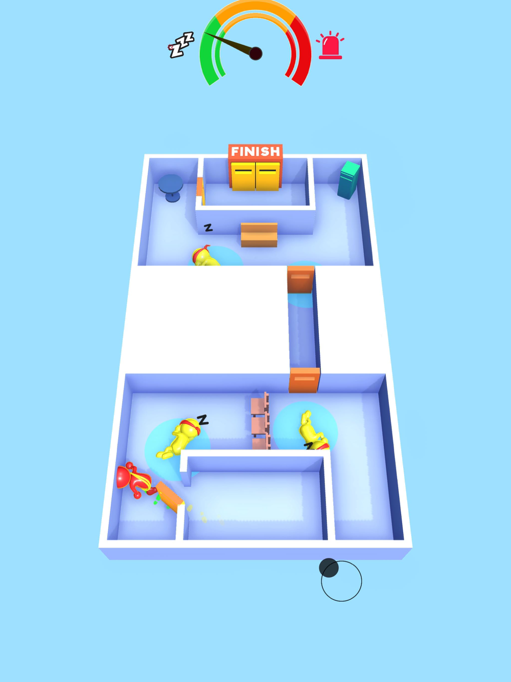 Your enemies are sleeping. You can take down all enemies by moving silently. If you make noise, they will all go after you.