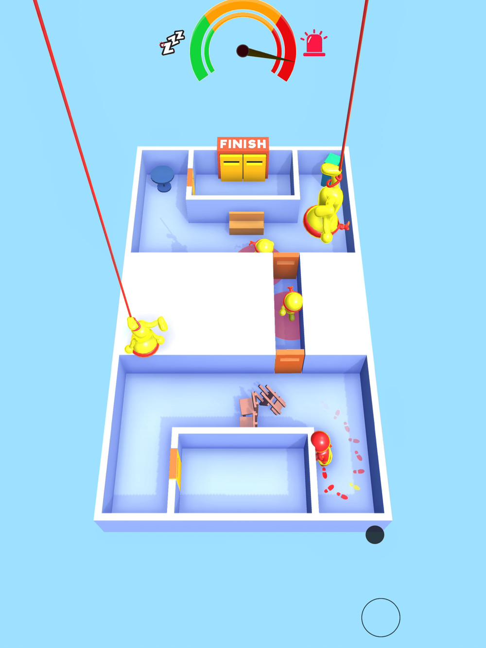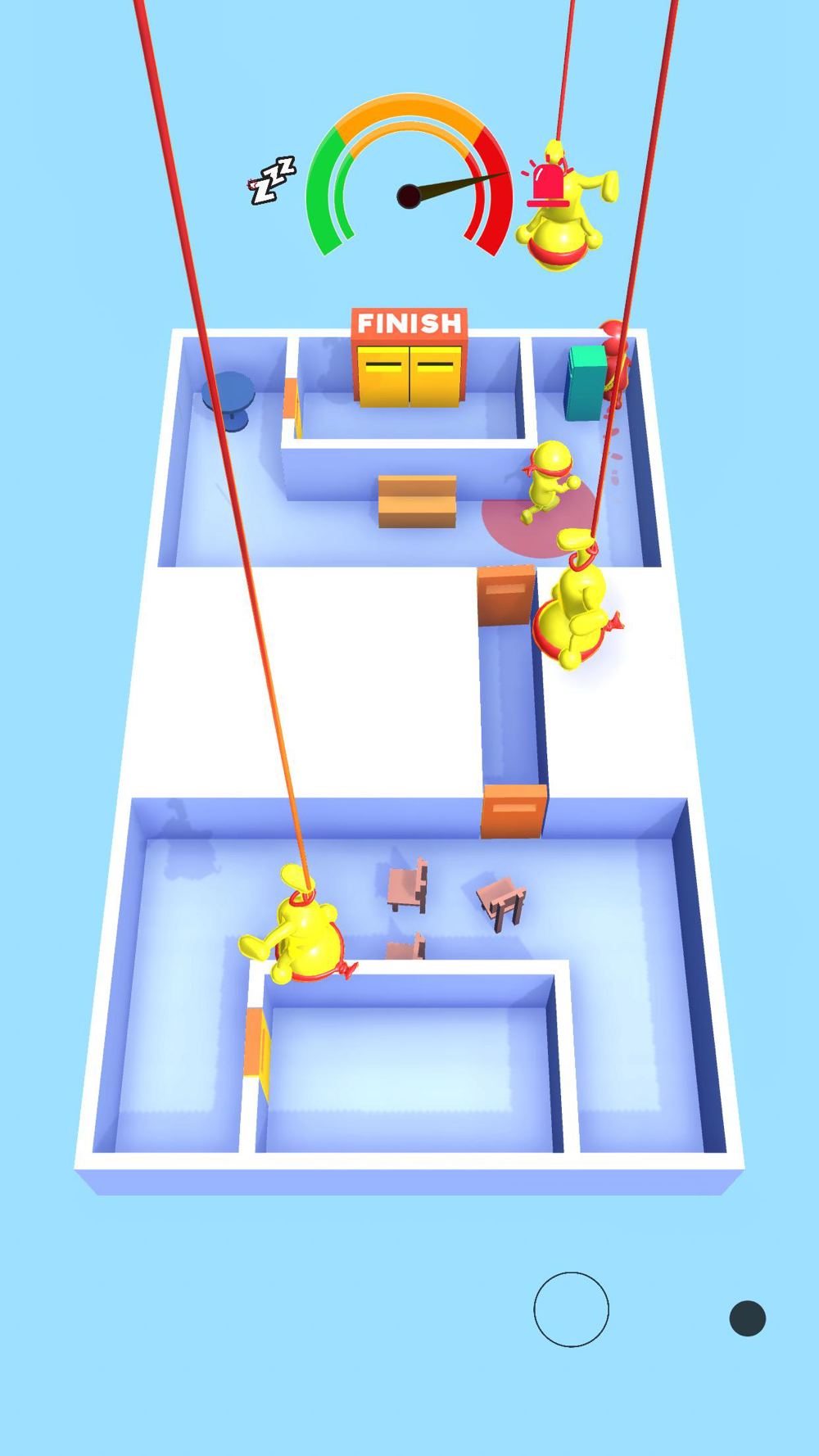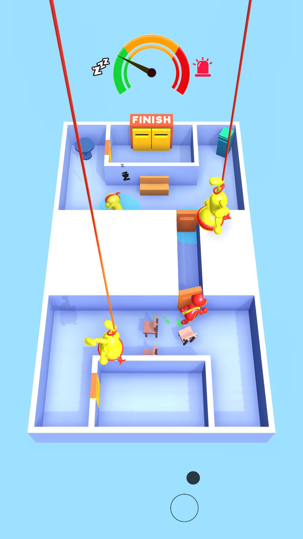 Your enemies are sleeping. You can take down all enemies by moving silently. If you make noise, they will all go after you.
