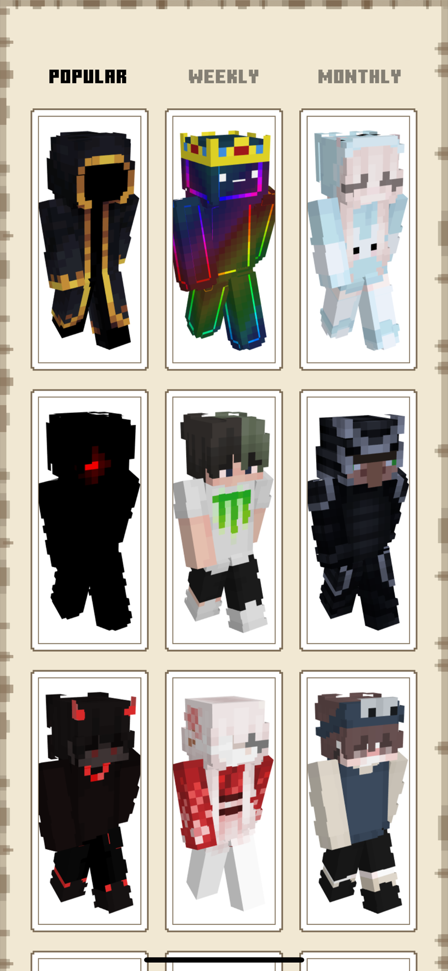 • Popular Minecraft skins updated frequently in 24 hours. Everyone likes new skins.