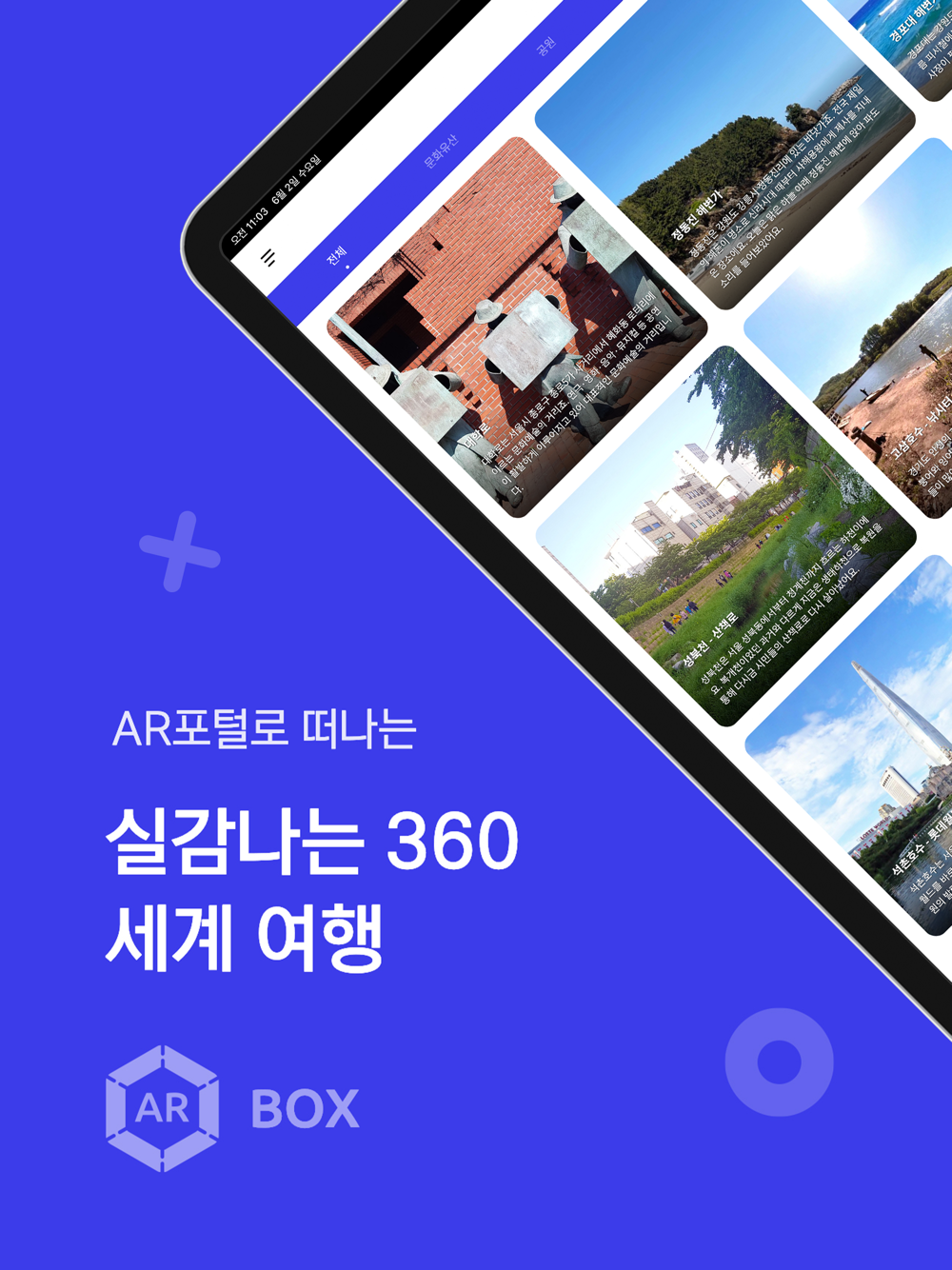 평소에 가보지 못했던 문화유산, 공원, 자연명소, 거리를 지금 바로 Portal를 열고 마치 그 장소에 간 것처럼 다양한 각도로 여행을 즐겨보세요. 그럼 지금 바로 ARBOX를 열고 떠나볼까요?