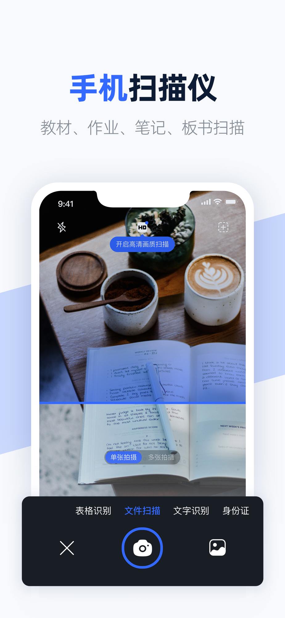 包含“拍图识字”、“手机扫描仪”、“图片转Excel”、“文档互转”等多种功能,快速、准确的帮助您识别图片中文字。界面清爽无广告,保持专注,助力您高效学习!