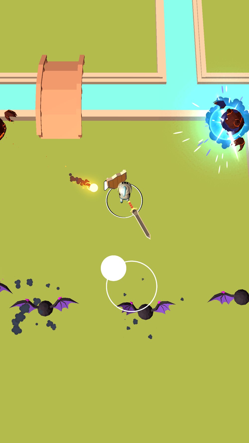 Slide your finger to slash your ennemies with your sword and to to push back the fireballs and projectiles launched by the ennemies with your shield.
