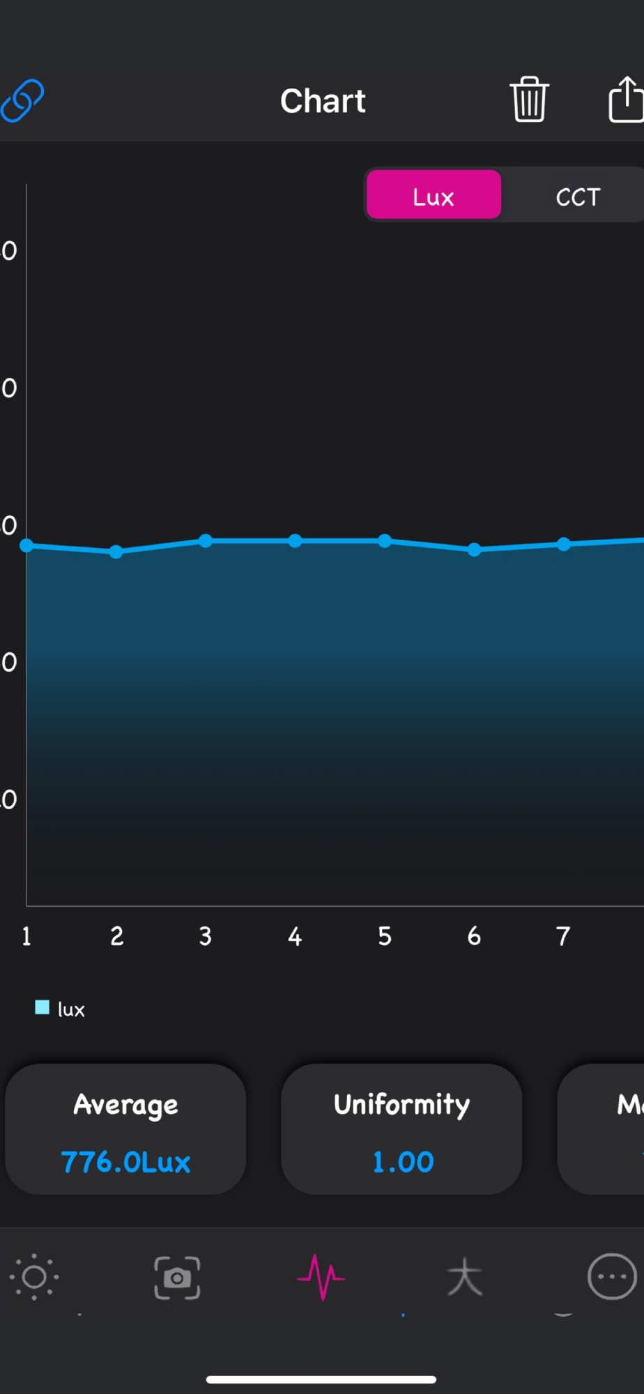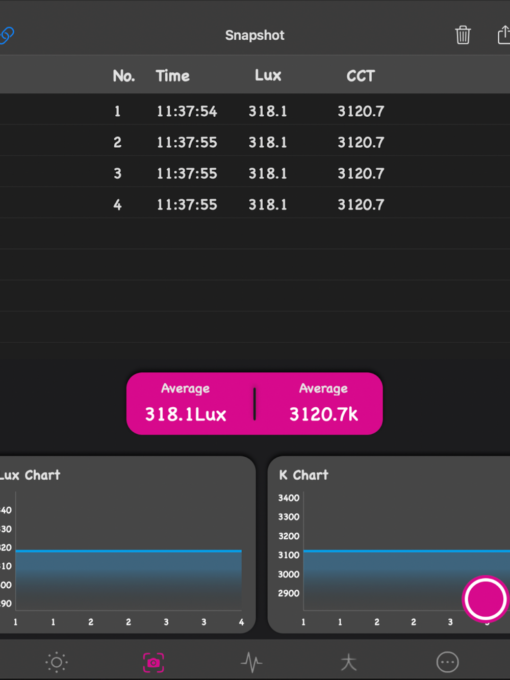 - Real-time measurement illuminance (lux) and color temperature (CCT)
