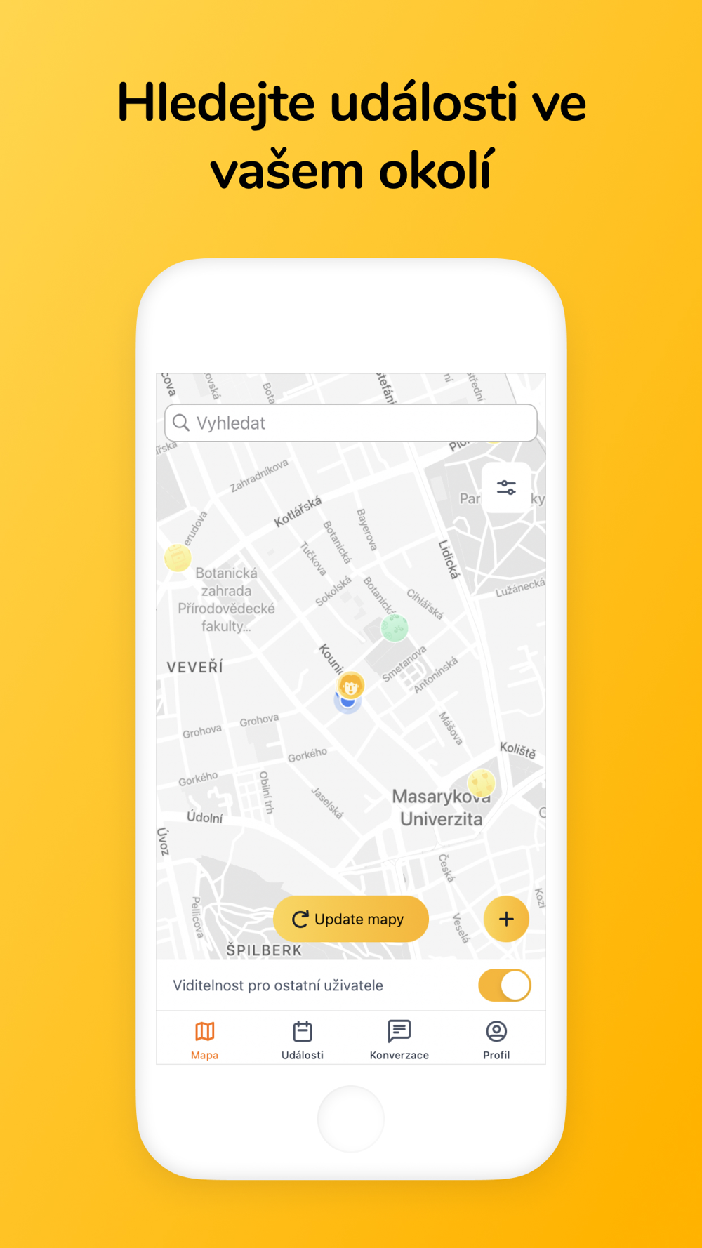 Vytvoř definovanou, nebo vlastní událost. Vlož na mapu a rozhodni, zda se o ní dozví tví přátelé, nebo celý svět.