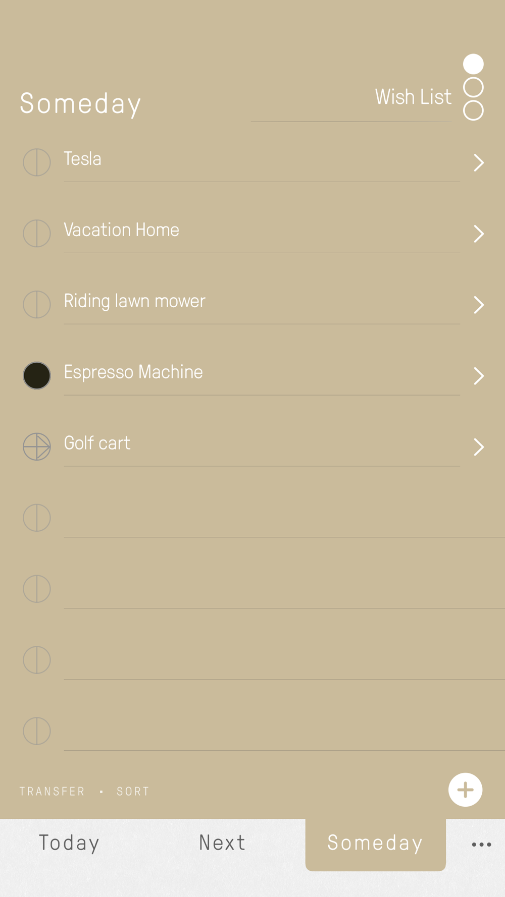 Track tasks on digital cards for Today, Next and Someday. Easily transfer unfinished tasks to Today's card.