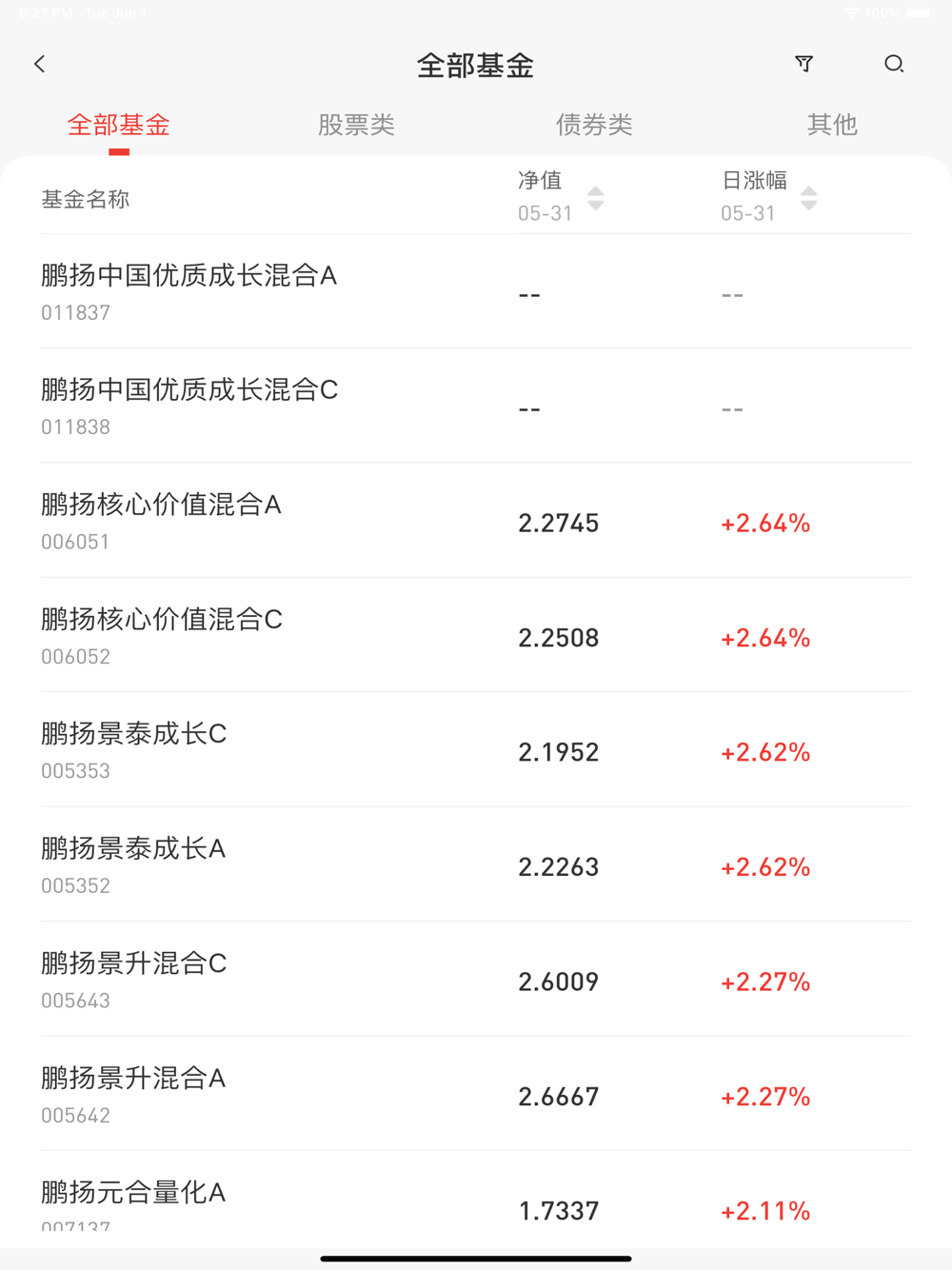 6. 全部持仓:可查询曾在银行、券商、及互联网买的鹏扬基金产品及其收益;