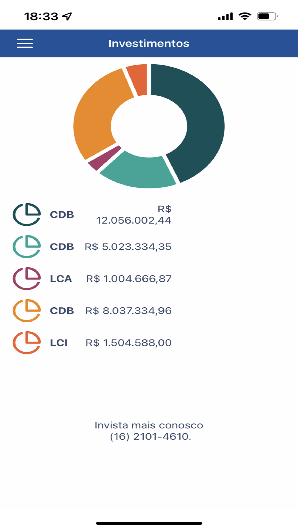 - Tela inicial contendo as suas últimas transações, lançamentos futuros e investimentos;