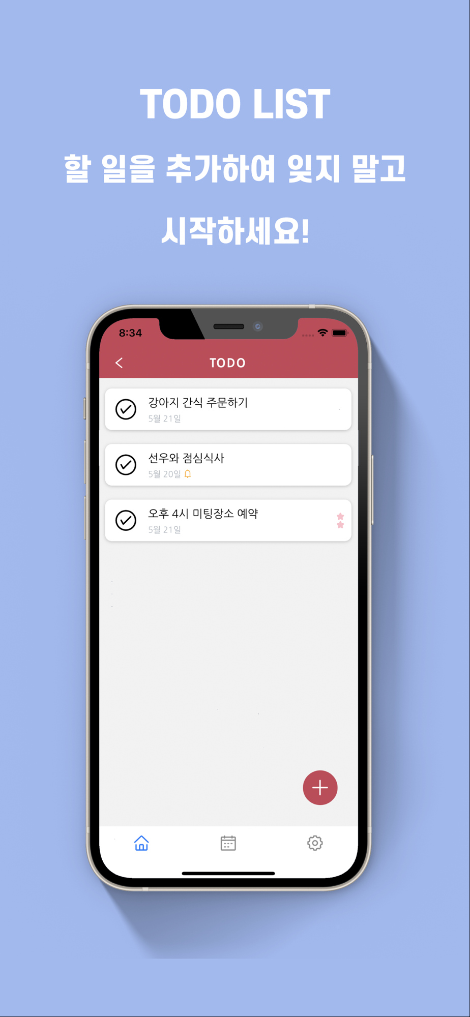 할 일 추가 시 원하는 날짜와 시간에 알림을 받을 수 있도록 설정할 수 있습니다