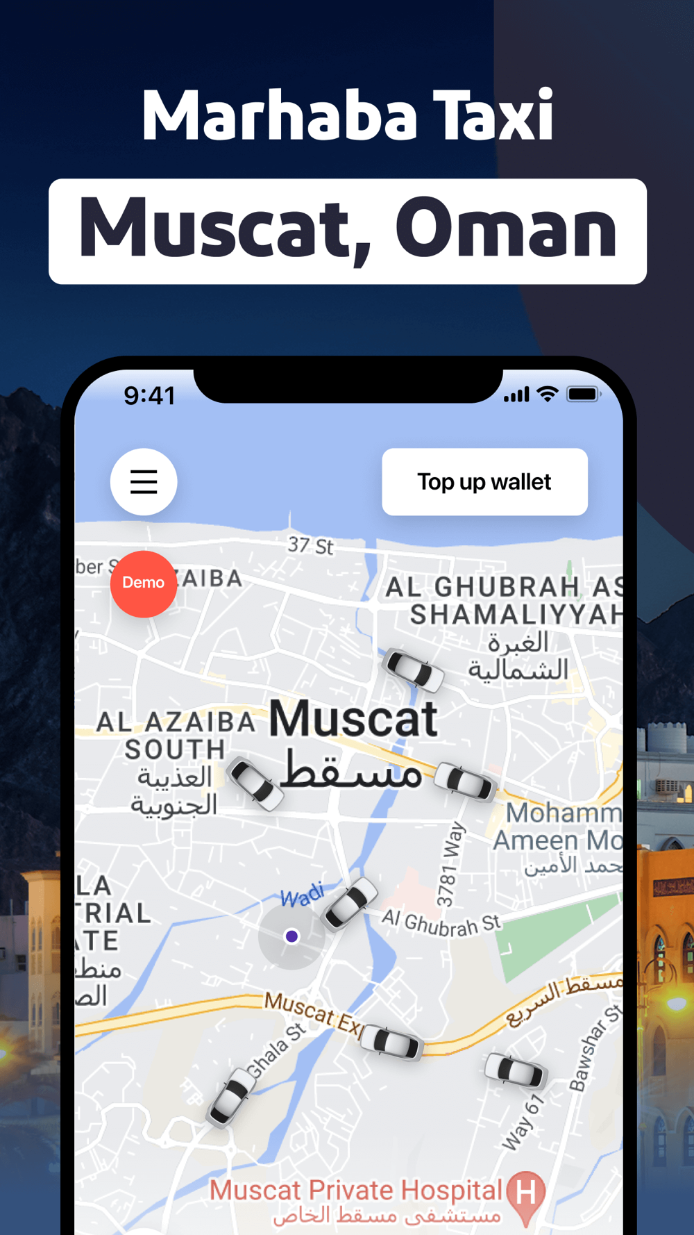 - Marhaba enables you to request rides only from licensed local drivers. It's a safe and convenient cab and port service working in Muscat, Oman.