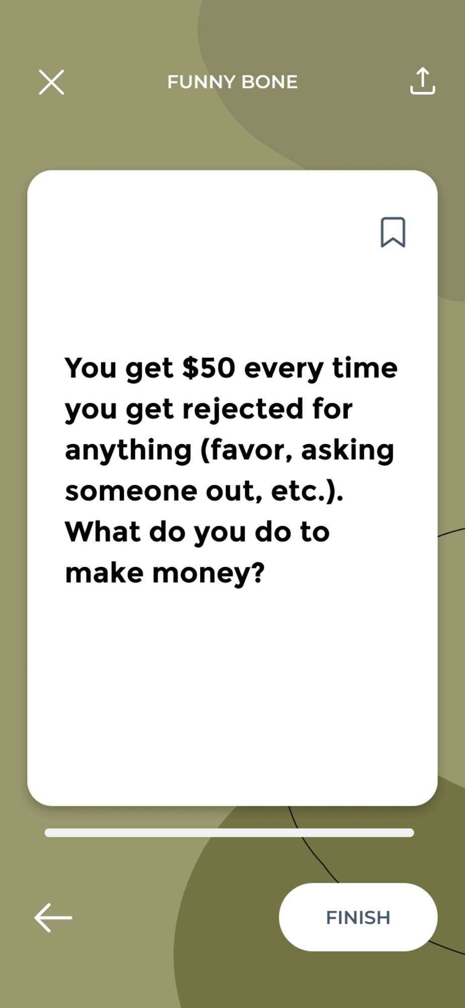 - Funny Bone - 50 fun and light-hearted prompts to get the ball rolling.