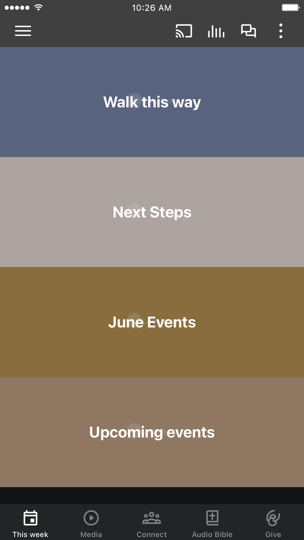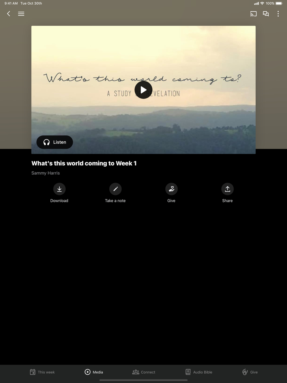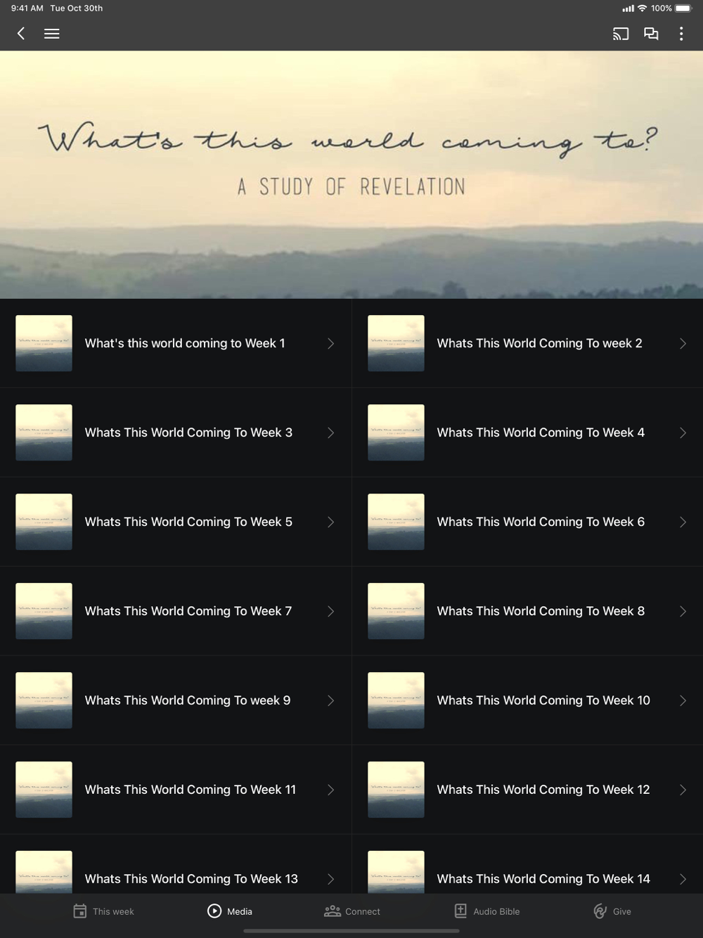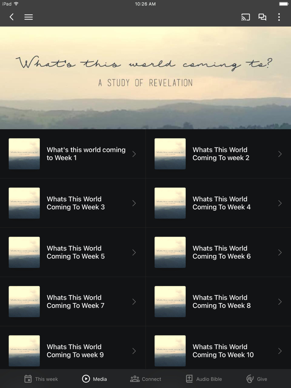 This app will help you stay connected with the day-to-day life of our church. With this app you can: watch or listen to past messages; stay up to date with push notifications; share your favorite messages via Twitter, Facebook, or email; and download messages for offline listening.