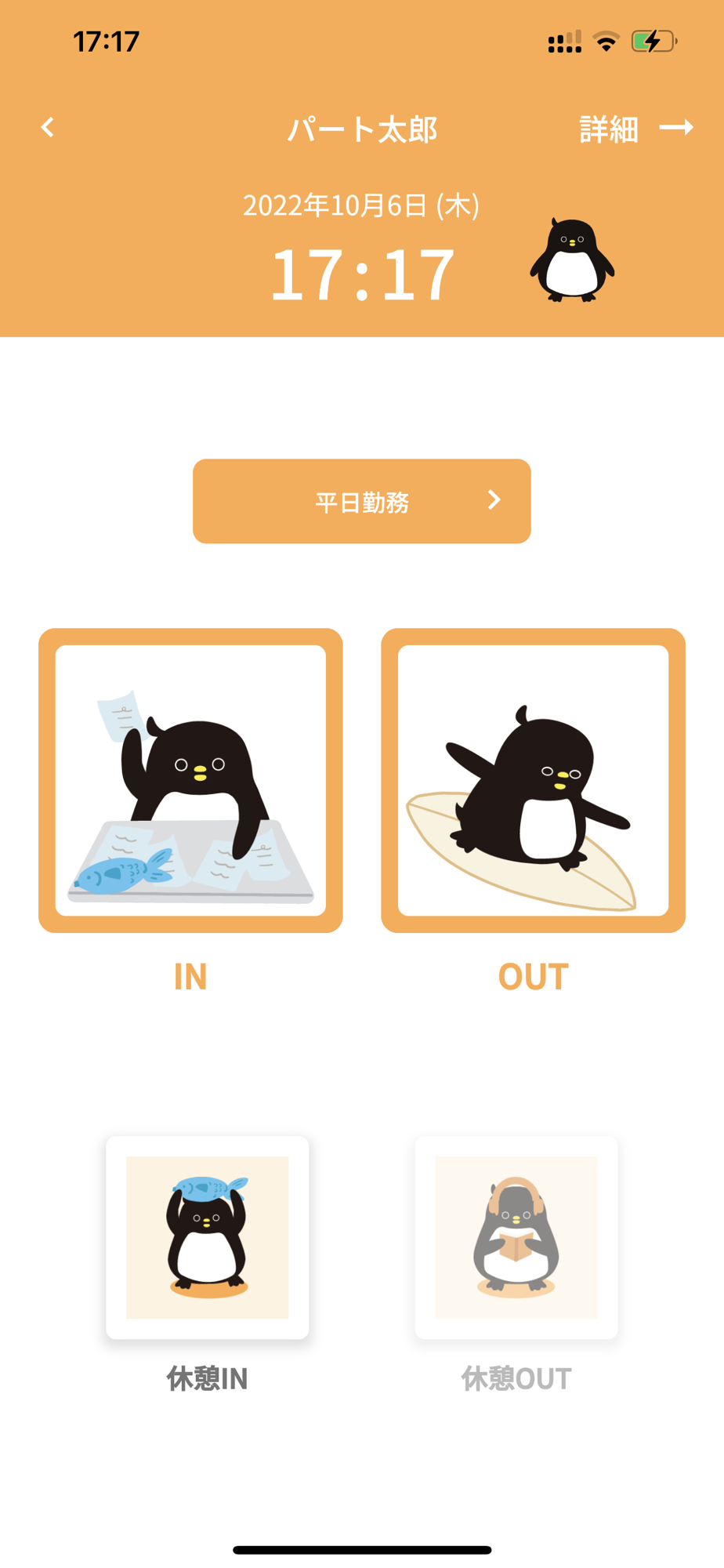 正社員は休憩1時間で固定、パートはボタンを押して計算、なんて設定も可能です。