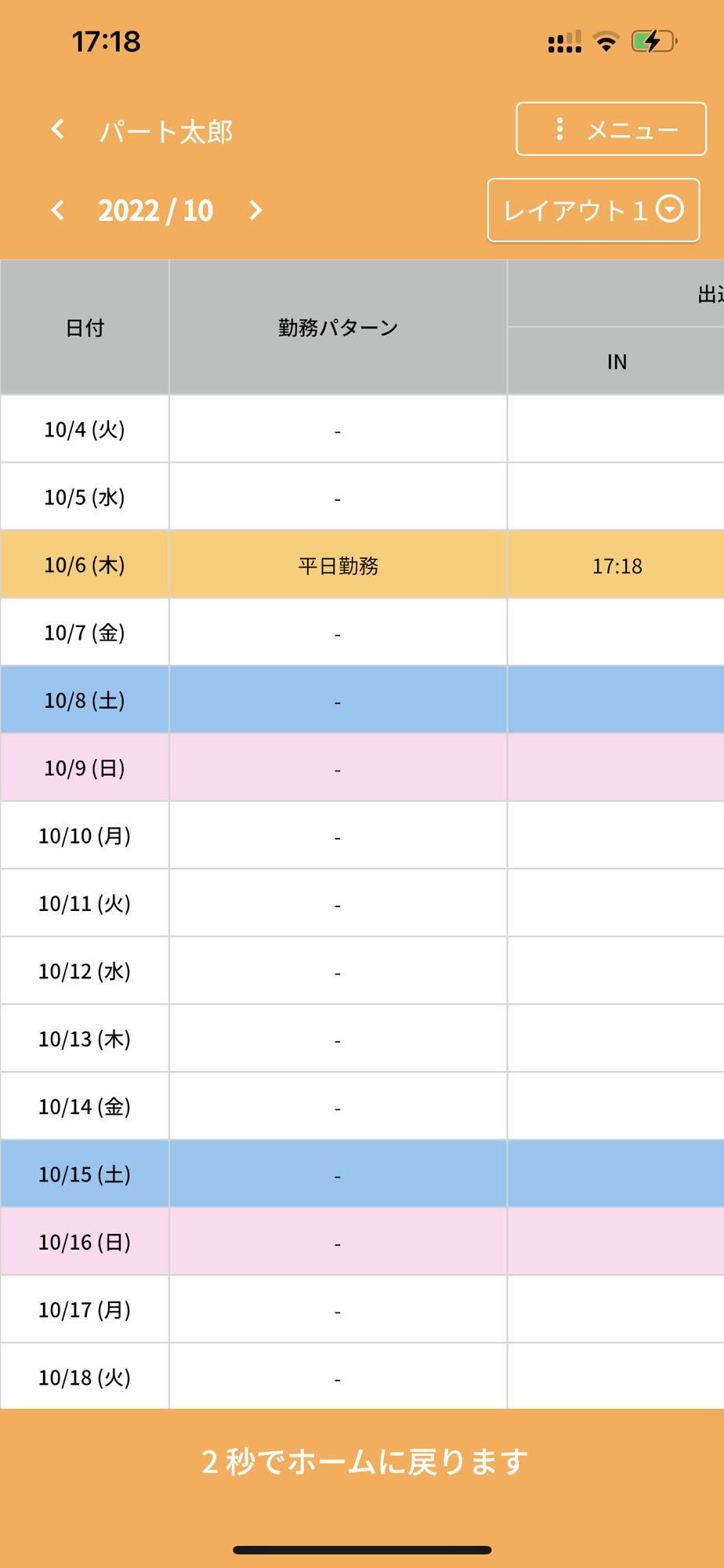2.名前をタップするか、顔認証をして、退出勤を記録します。