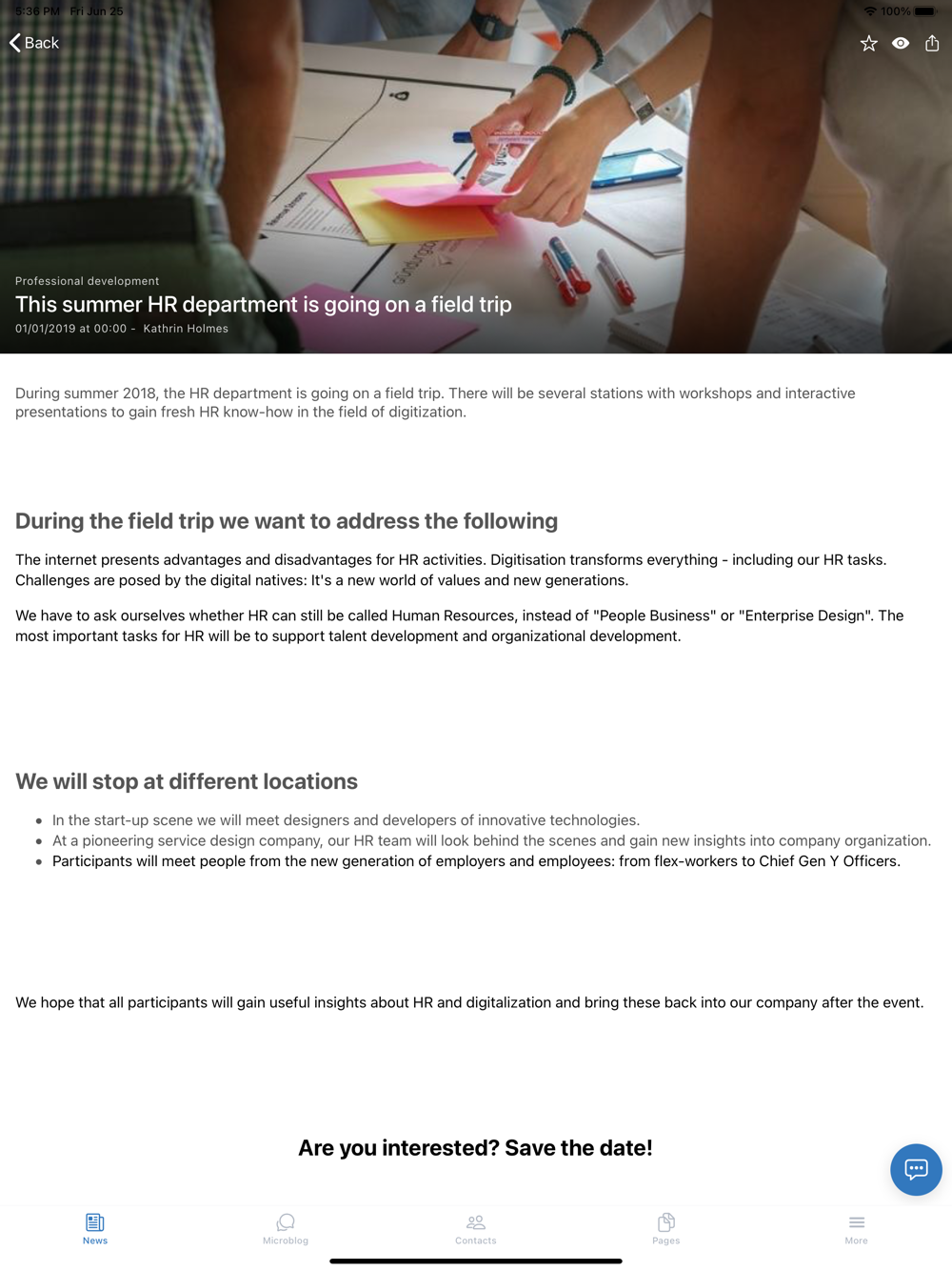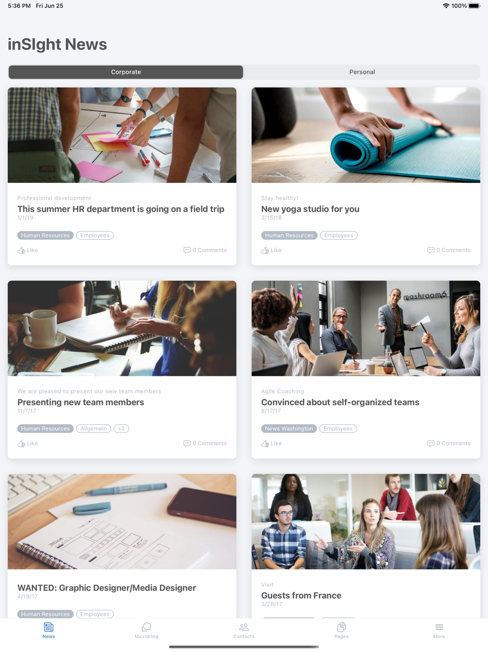 With the inSIght app, you now have the latest news, microblogs, employee forums, and events with you at all times. Stay up to date from anywhere, anytime, join the discussion in the comments, and collaborate with your team via microblogs.