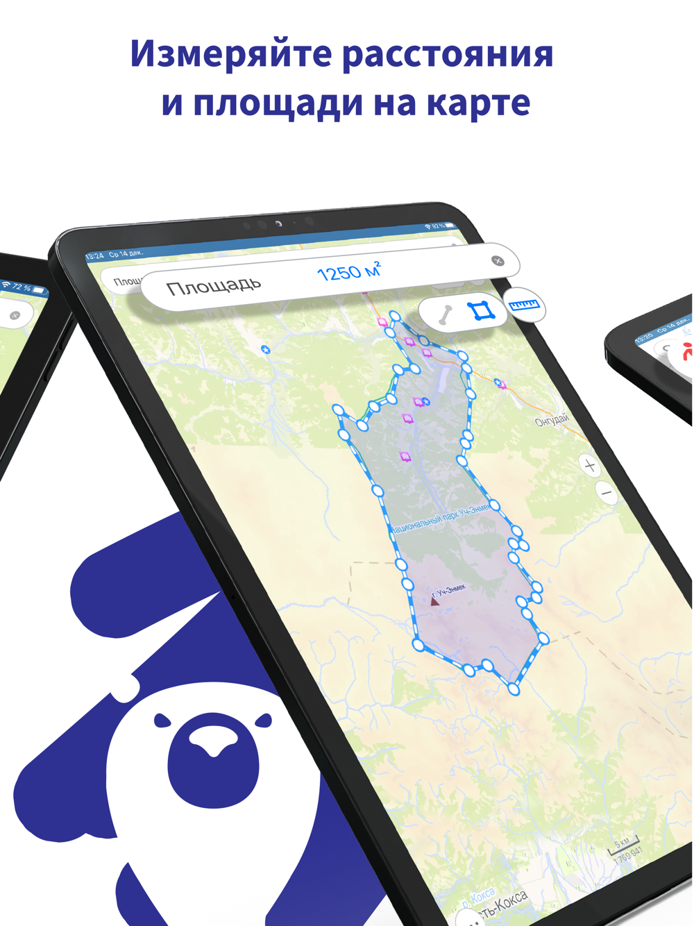 Измеряйте расстояния между объектами, протяженность маршрута или площадь интересующего участка.