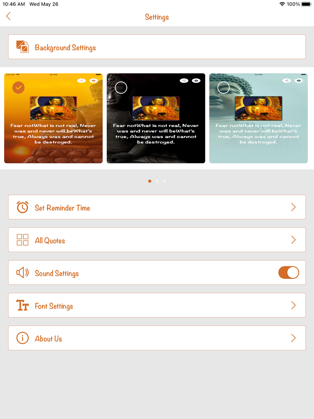 You can download the app with over 270 Quotes for free. If you decide to get everyday a new quote with multiple beautiful backgrounds, widget, font and sound settings and without an ad banner you can purchase the app for only 1,99 $ for a Lifetime License!