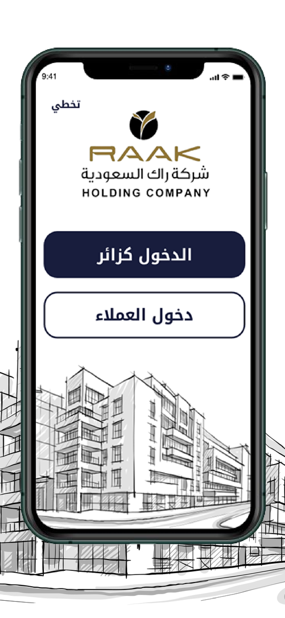 The RAAK application is owned by RAAK Real Estate Company, based in the Kingdom of Saudi Arabia. It is an application that facilitates services and preferences for villa owners from the company and enables the owner to request maintenance for all home faults, including electricity, plumbing, and others.