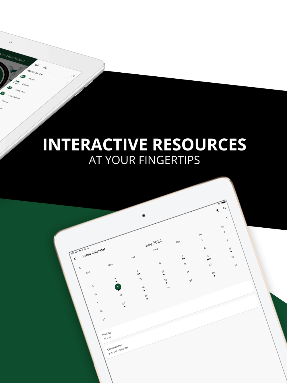 - Calendars: Stay in the know with events calendars showcasing athletic events, tutoring schedules, testing periods, and everything in between!