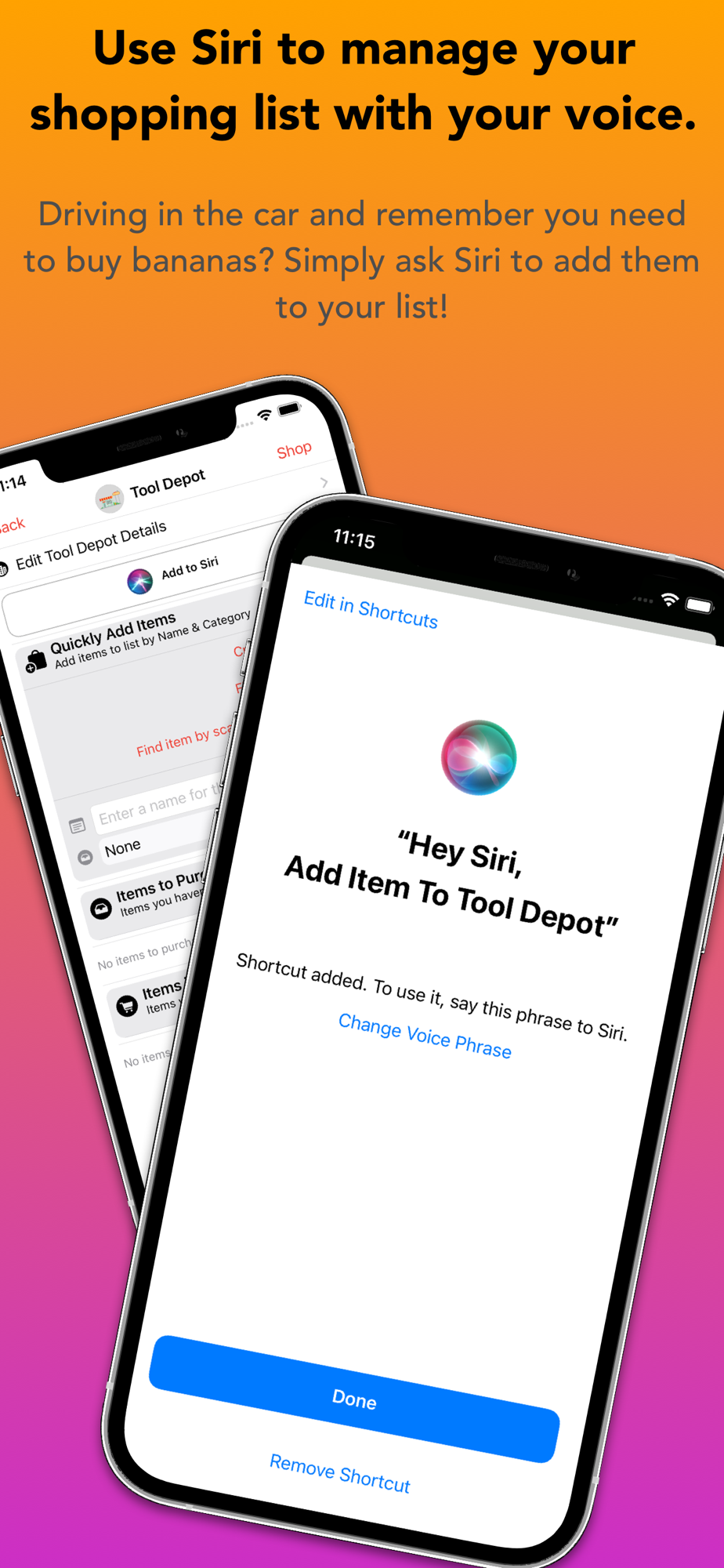 Stuff To Get can work with Siri to allow you to use your voice to maintain your Shopping Lists. Driving in the car and remember you need to buy milk? Simply ask Siri to add it to your list!