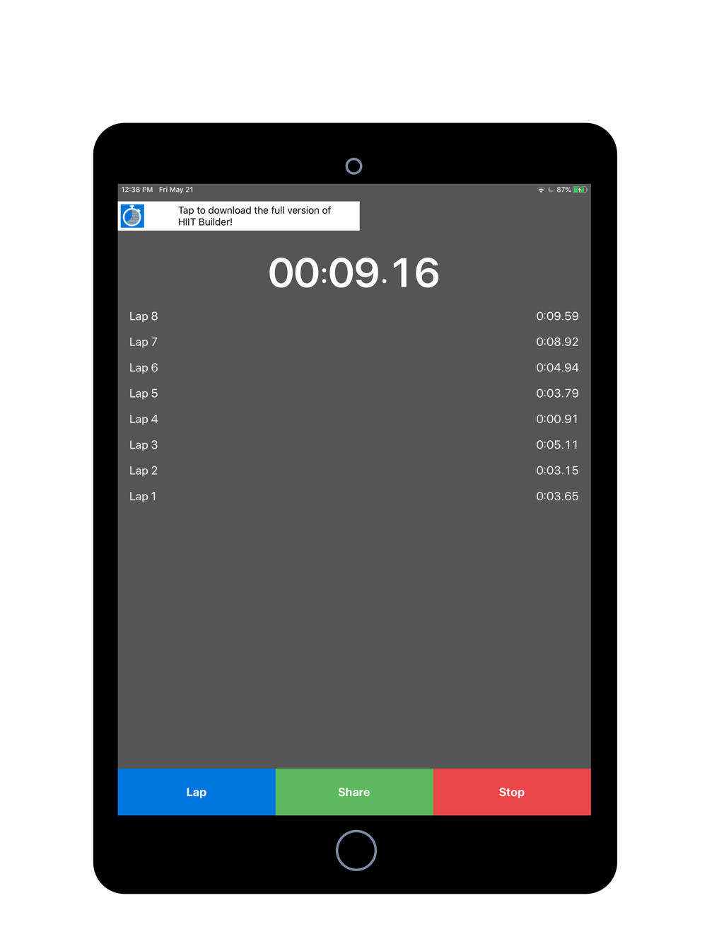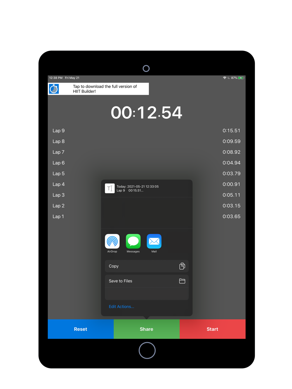 Don's Stopwatch allows you to start and stop the time, reset, and save laps. You can share the results with your friends via email, AirDrop, or message.