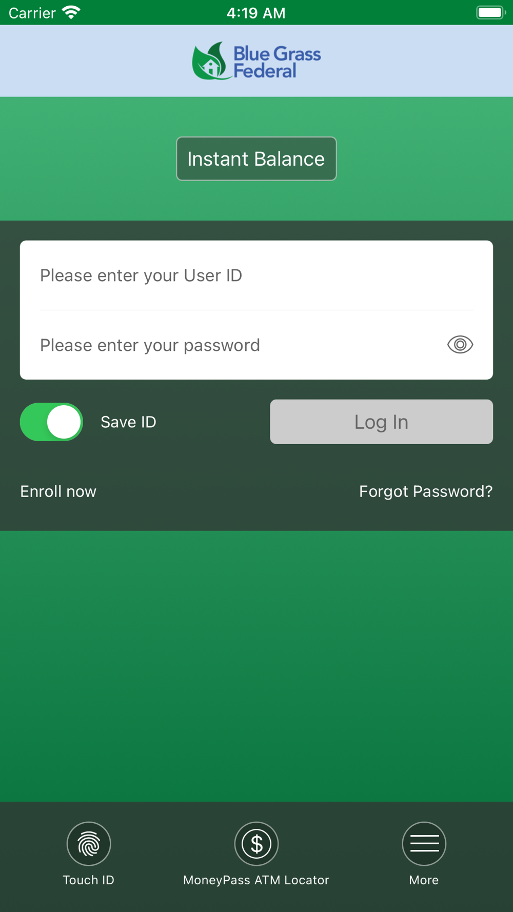 We are committed to the safety of your personal information and have fraud controls in place to alert us of potential fraud activity. The same high-level safety and security controls used for our online banking are applied to our mobile app and no data is stored on your device. Terms and conditions available https://www.bluegrassfederal.com/Disclosures