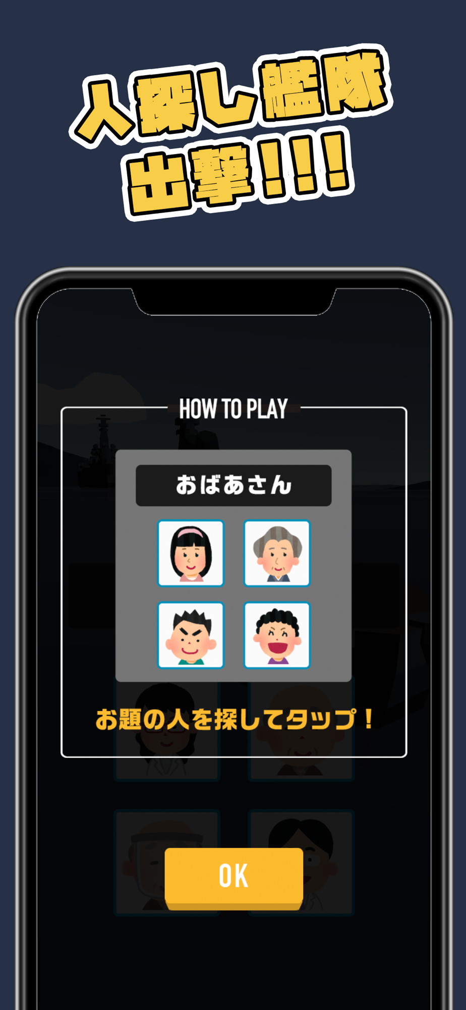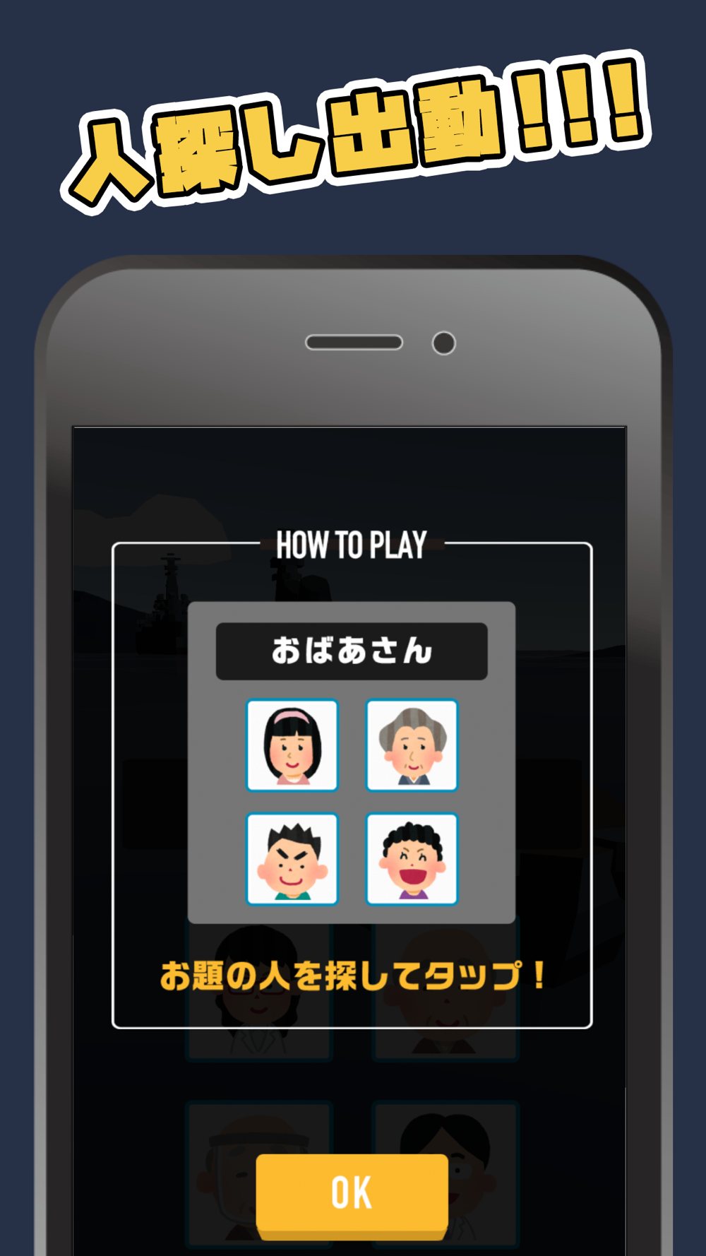 選択肢の中からお題に合う人を見つけてタップするだけ!