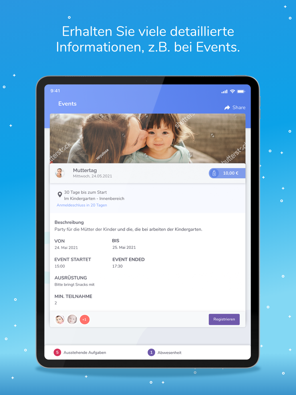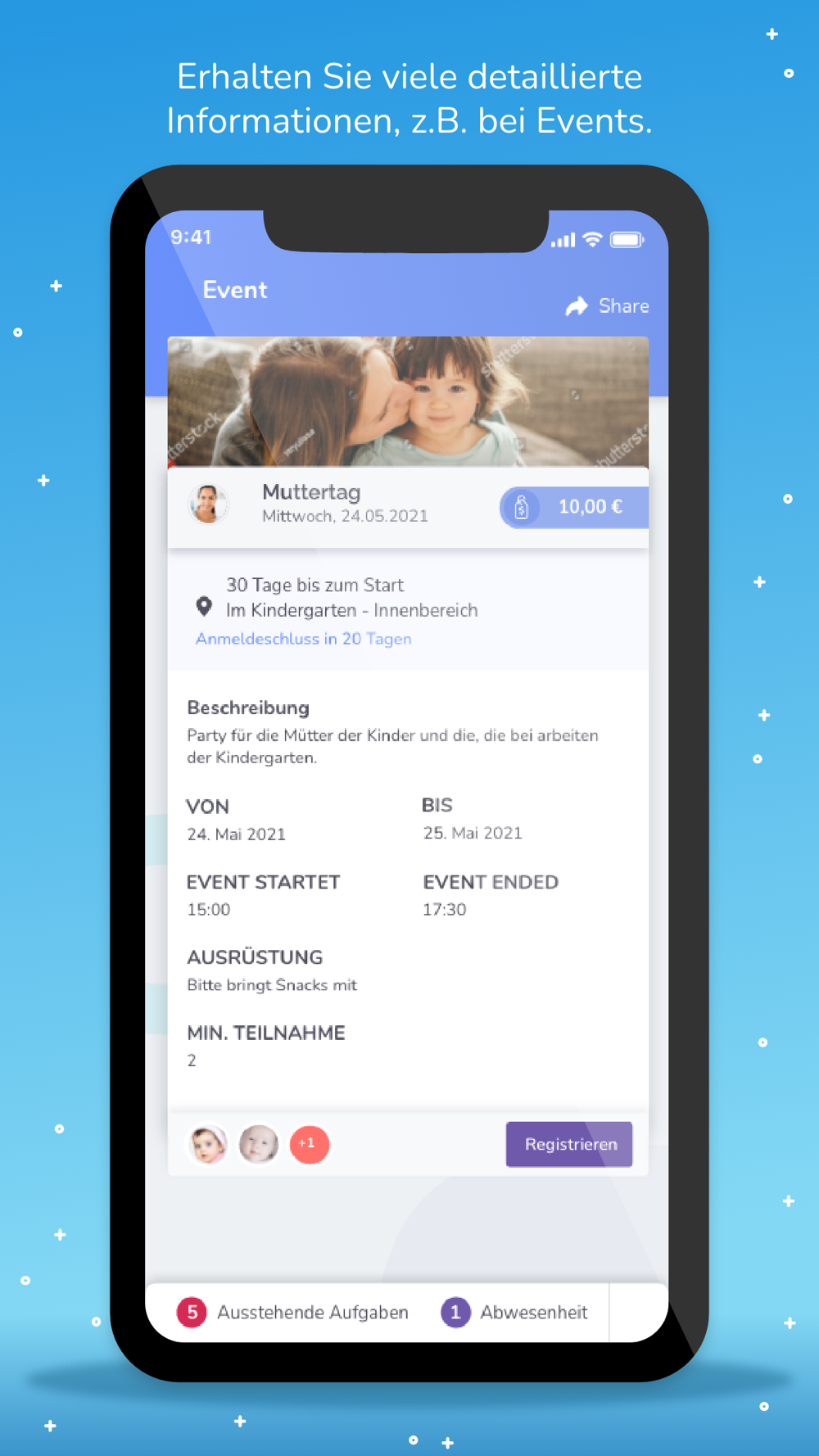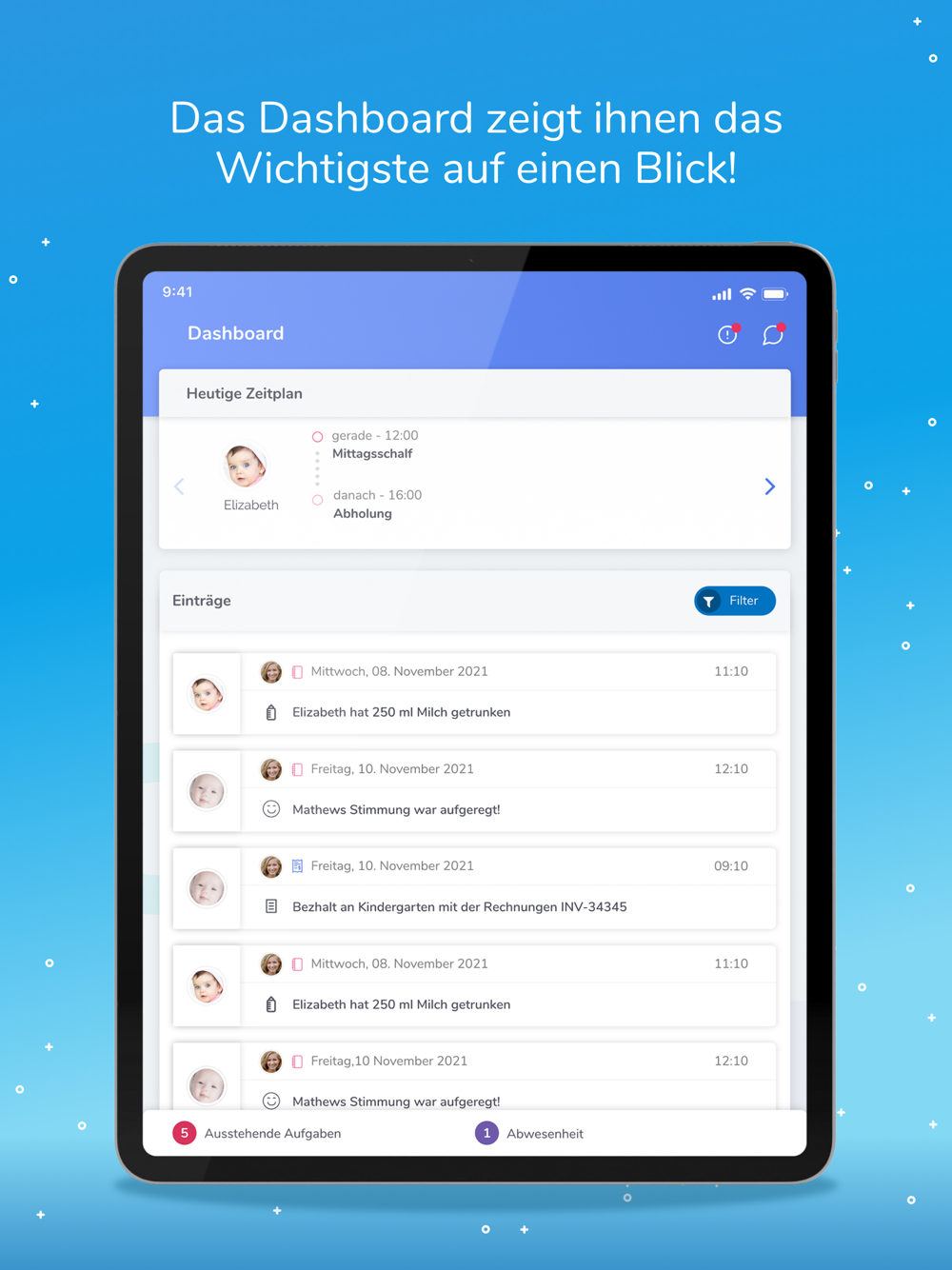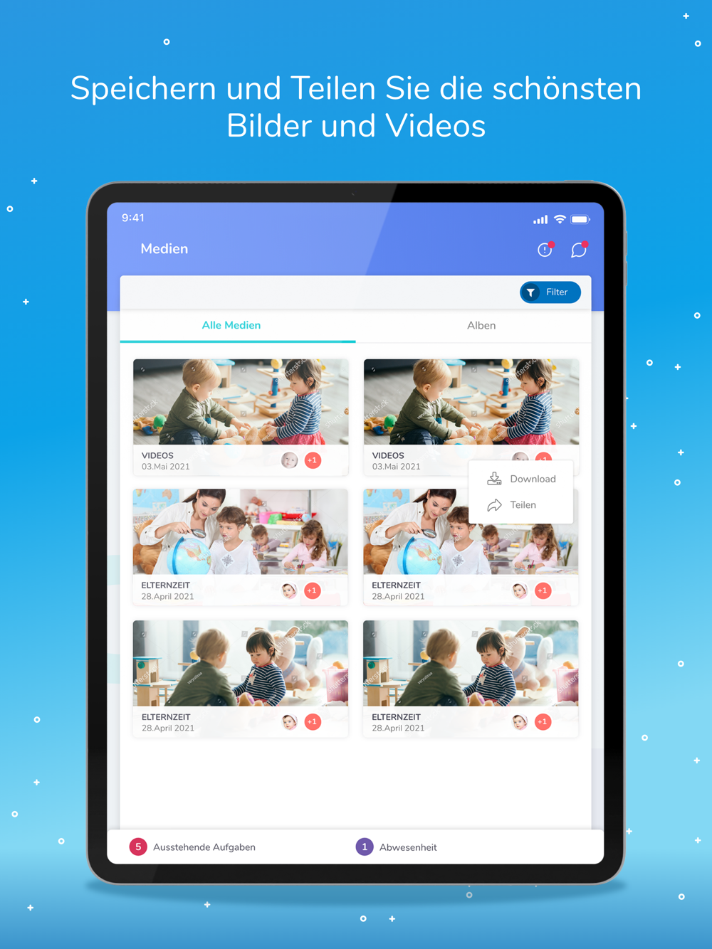Die Kidling Kita-App stärkt die Partizipation zwischen Kita, Fachkräften und Eltern. In diesem geschützten Umfeld können Sie am Kita-Alltag teilhaben und erhalten wertvolle Einblicke in die Entwicklungsstufen Ihres Kindes. Die Freischaltung für die App erfolgt durch den Träger Bambini. Bei technischen Fragen zu der App können Sie das Kidling Support Team unter