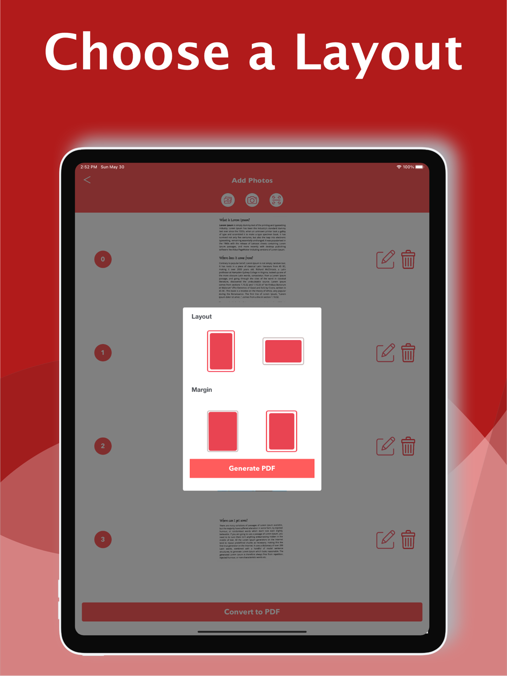 Take photos of documents or scan it then convert to pdf by one click. Choose from predefined Photo layouts. Convert jpg to pdf to easily print one or more photos on a page.Simple and intuitive interface makes PDF Photos the easiest JPG to PDF Converter