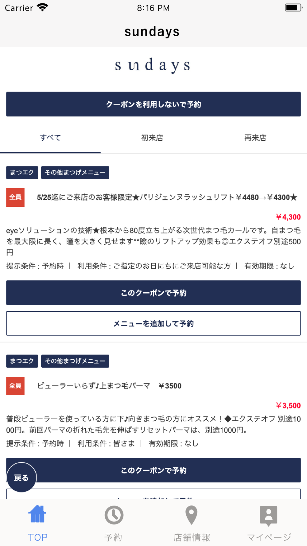 お得なクーポンが配信されます。ネット予約時にクーポン利用での予約も可能なので来店時もスムーズに施術頂けます。