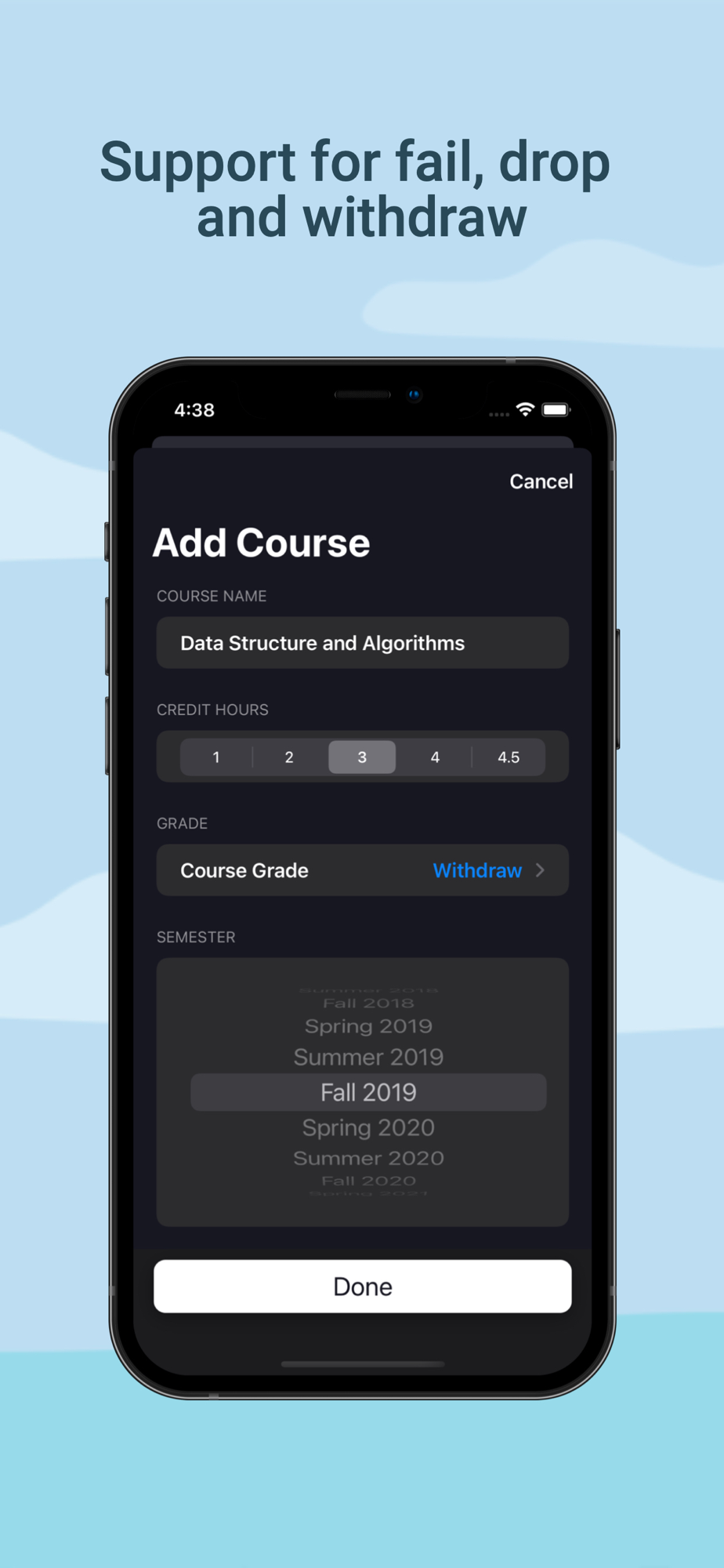 - Fail, Drop, Withdraw Support