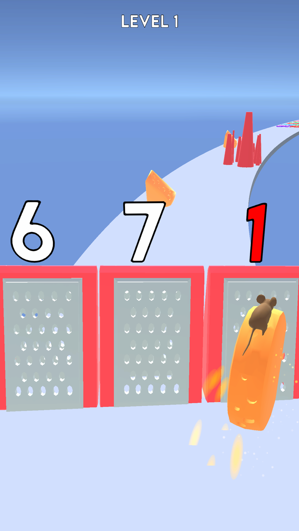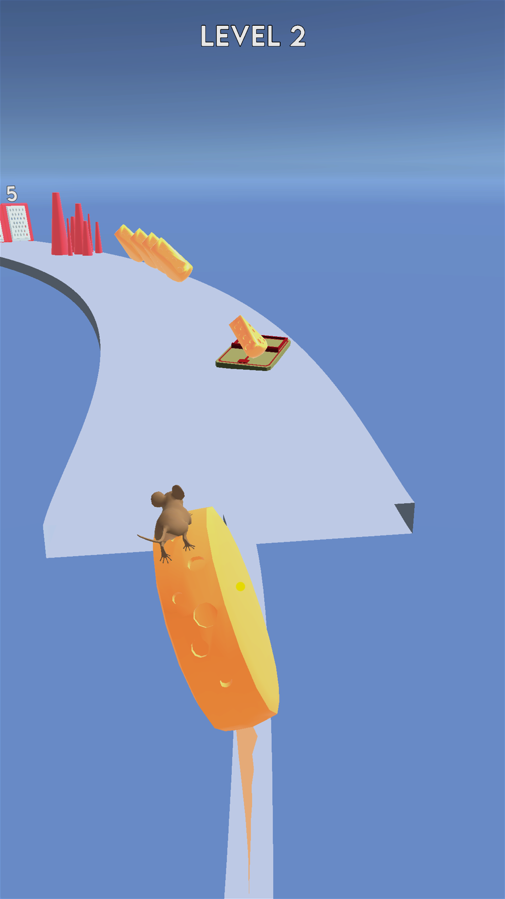 Collect what you can and choose the smaller obstacles to save your cheese!