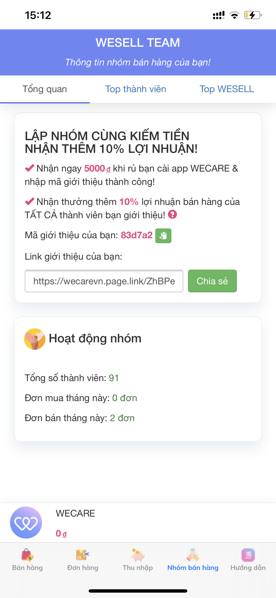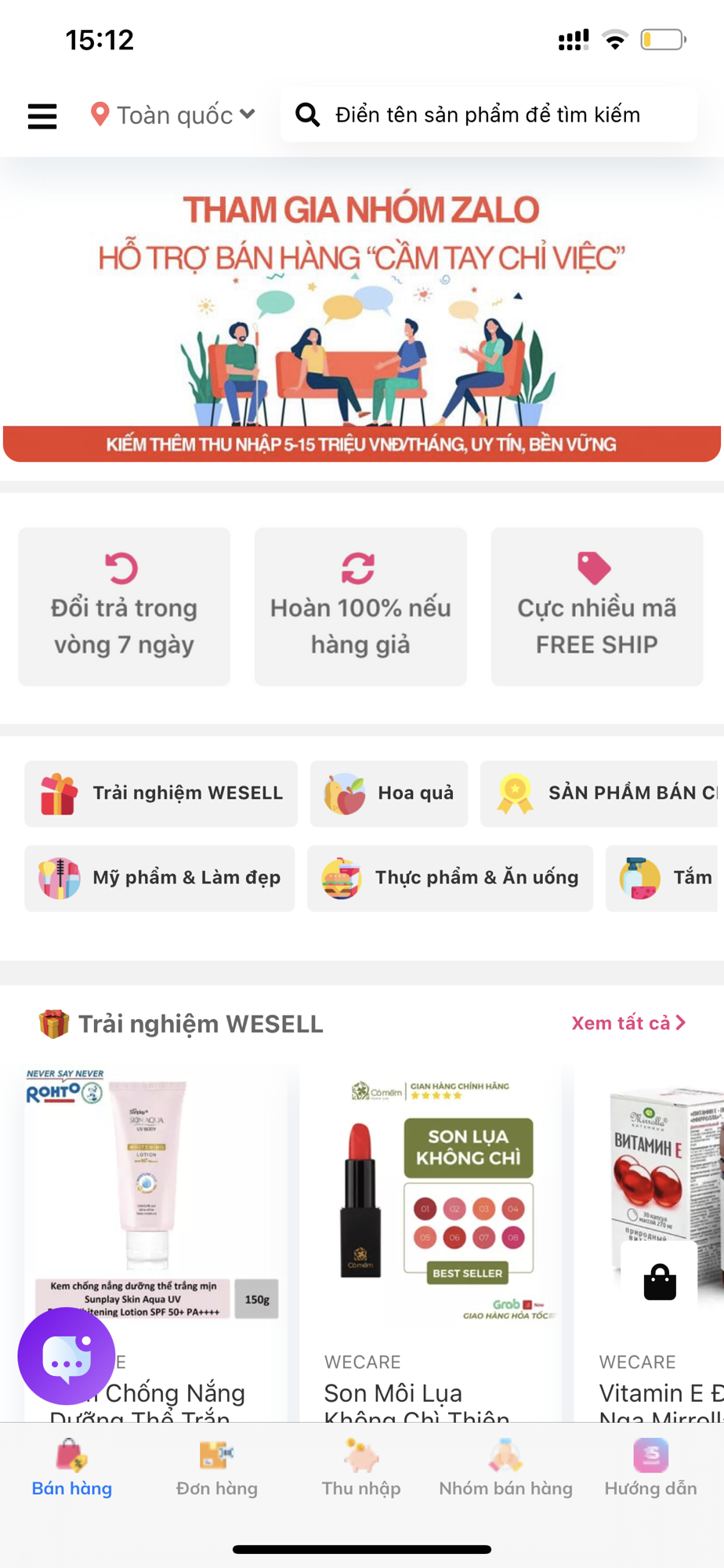 WESELL - Ứng dụng dành cho cộng tác viên gom đơn mua chung