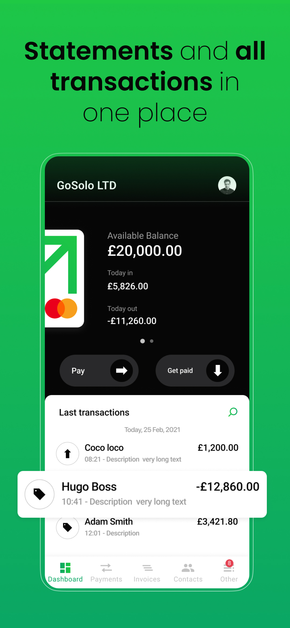 GoSolo makes it lightning fast to register a new limited company, open a business account with a debit card and start raising invoices.