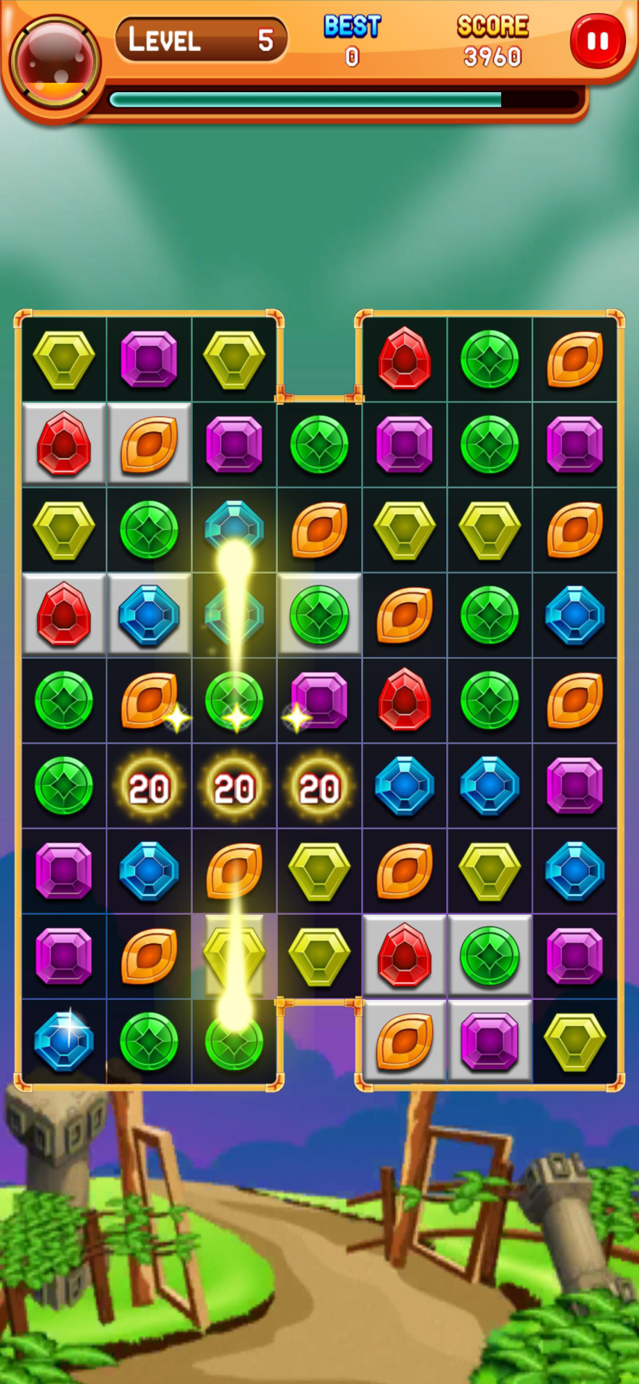 Match jewels on every square to destroy all the squares under the jewels. Then a magic candy will appear. Let the candy fall off the board to win.