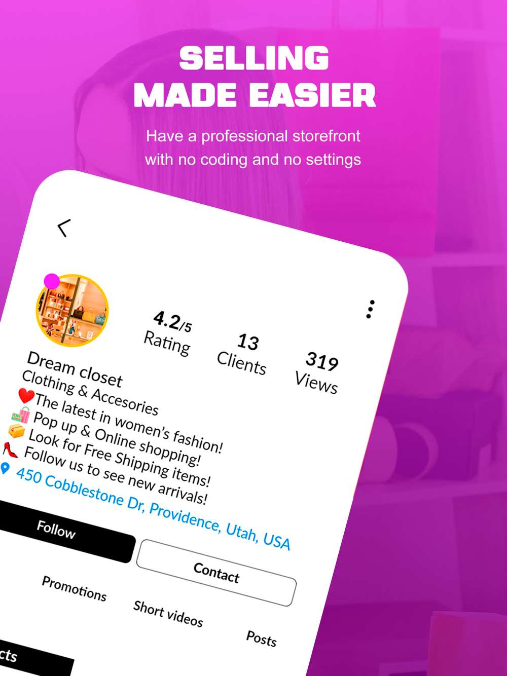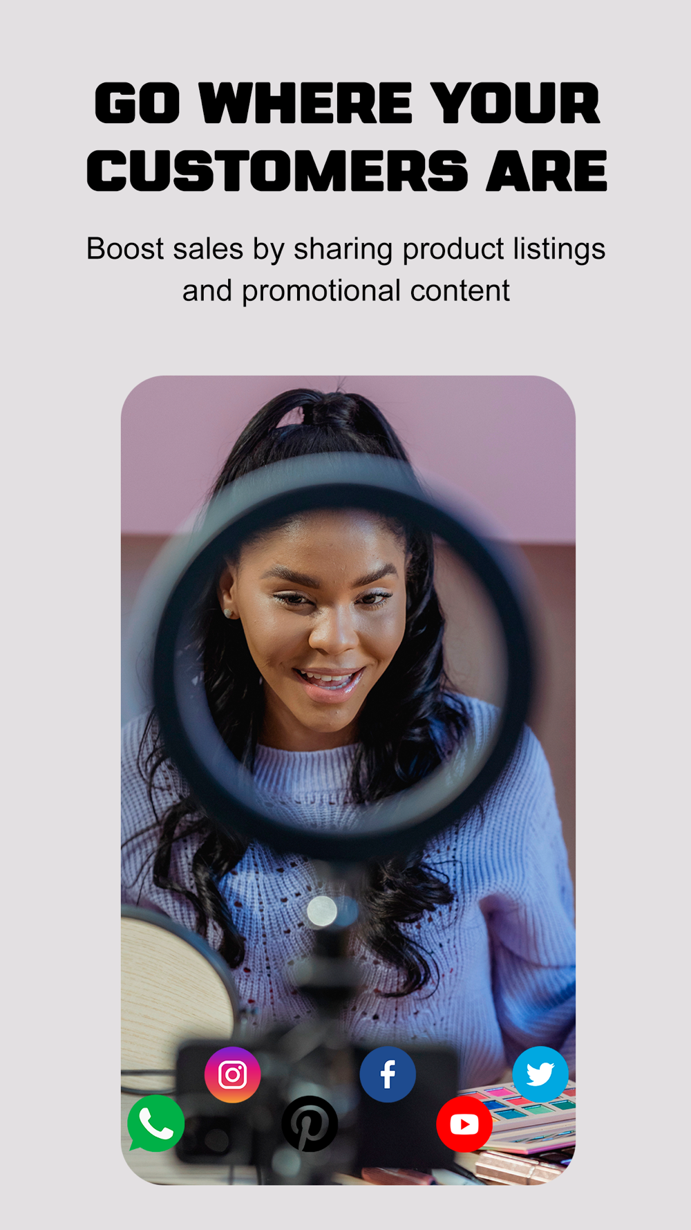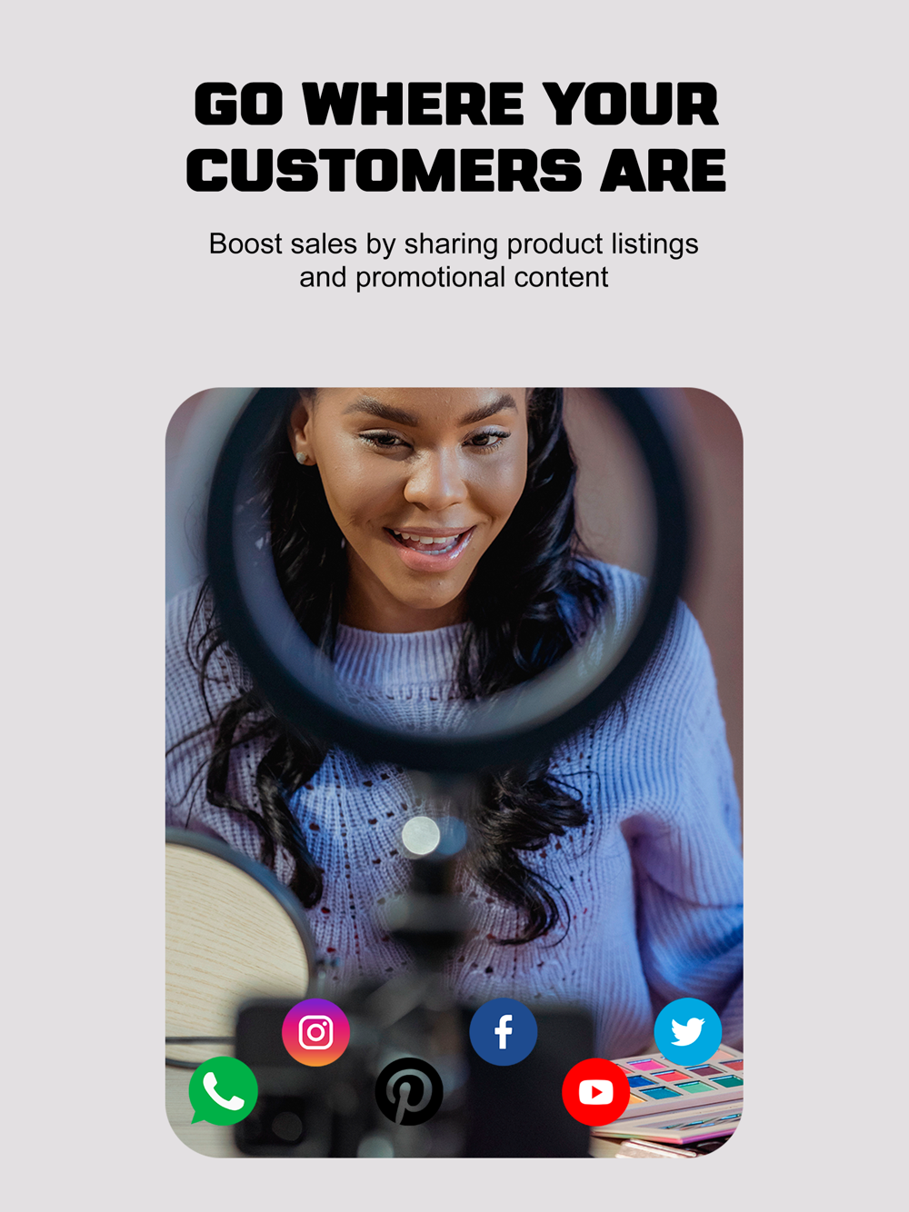 - Seller store front, product listings, promotional content, and social media content will be reachable by shoppers in Waaux Market shopping app.