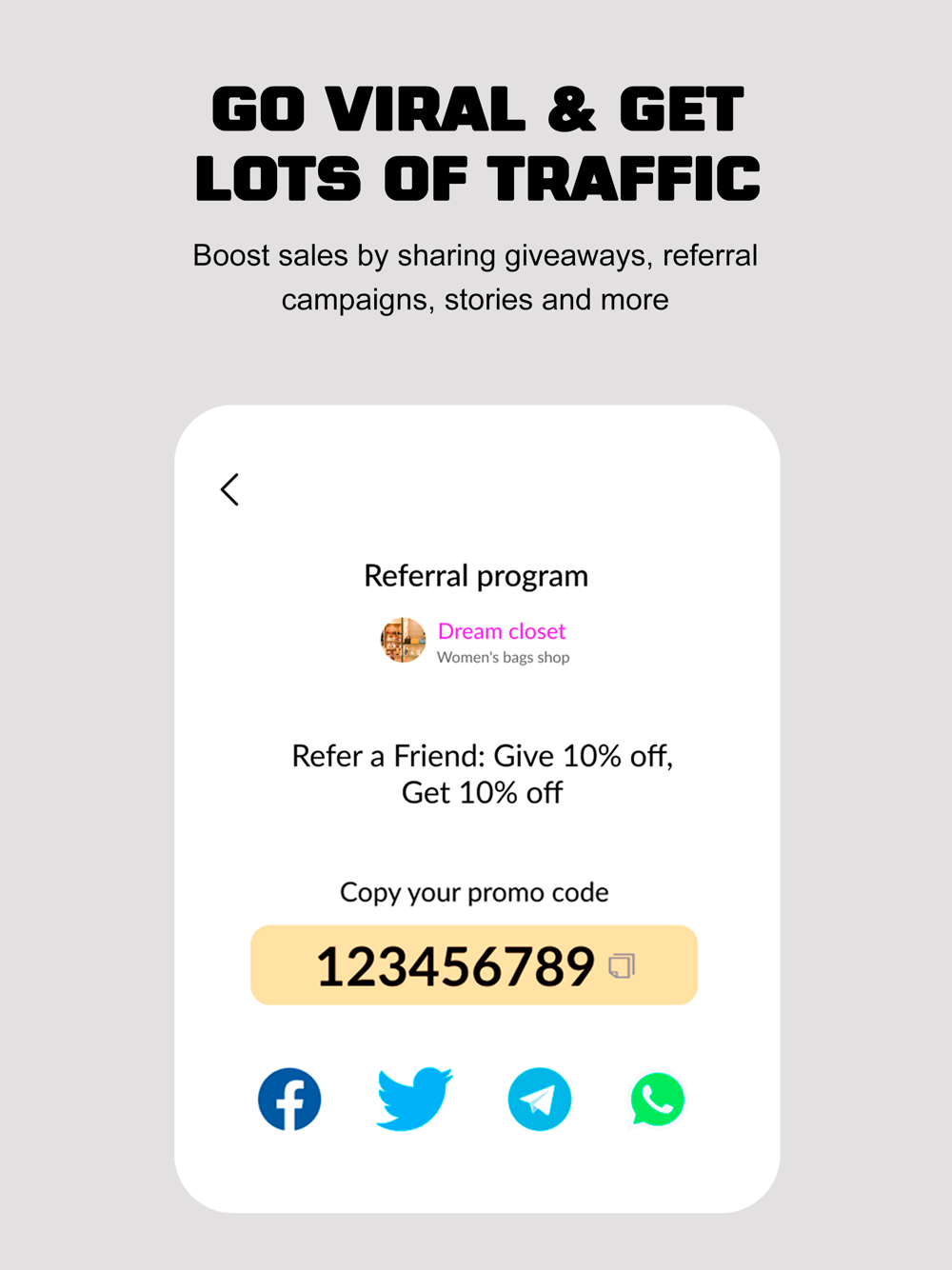 5. Create product discounts, giveaways, and referral campaigns to boost your sales.